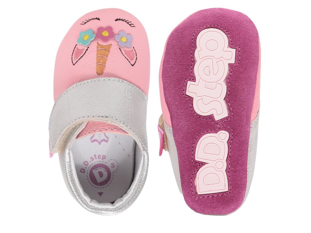 Kožené capáčky DD Step K1596-61702 Strawberry sú ideálne pre prvé krôčiky , či už okolo nábytku, tak aj tie úplne samostatné bez opory. V ružovej farbe s obľúbeným motívom jednorožca.