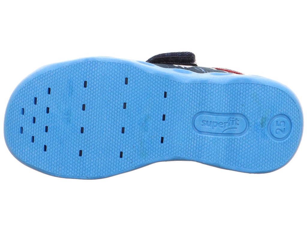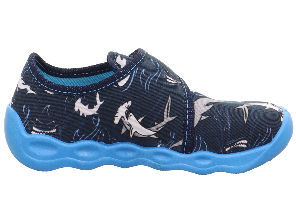 Chlapčenské papuče Superfit Bubble 1-006273-8030 v tmavo modrej farbe s motívom Shark / žralokov sú skvelé do škôlky, školy aj na doma . Vďaka suchému zipsu sa dajú krásne regulovať v oblasti priehlavku a ľahko ich tak obujú aj deti s vyšším priehlavkom . V okolí členku je mierne vykrojenie, topánka de facto kopíruje nôžku a je naozaj pohodlná.