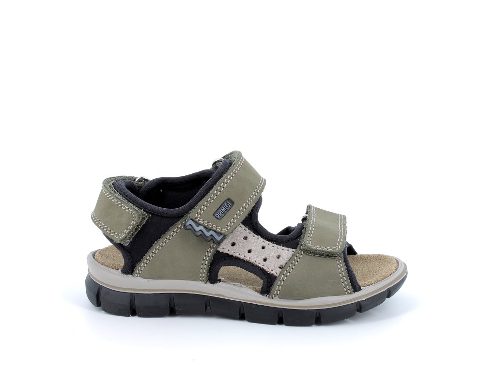 Chlapčenské sandále s otvorenou špičkou a pätou, s pohodlným mäkkým došľapom z kože. Nenápadná khaki farba.