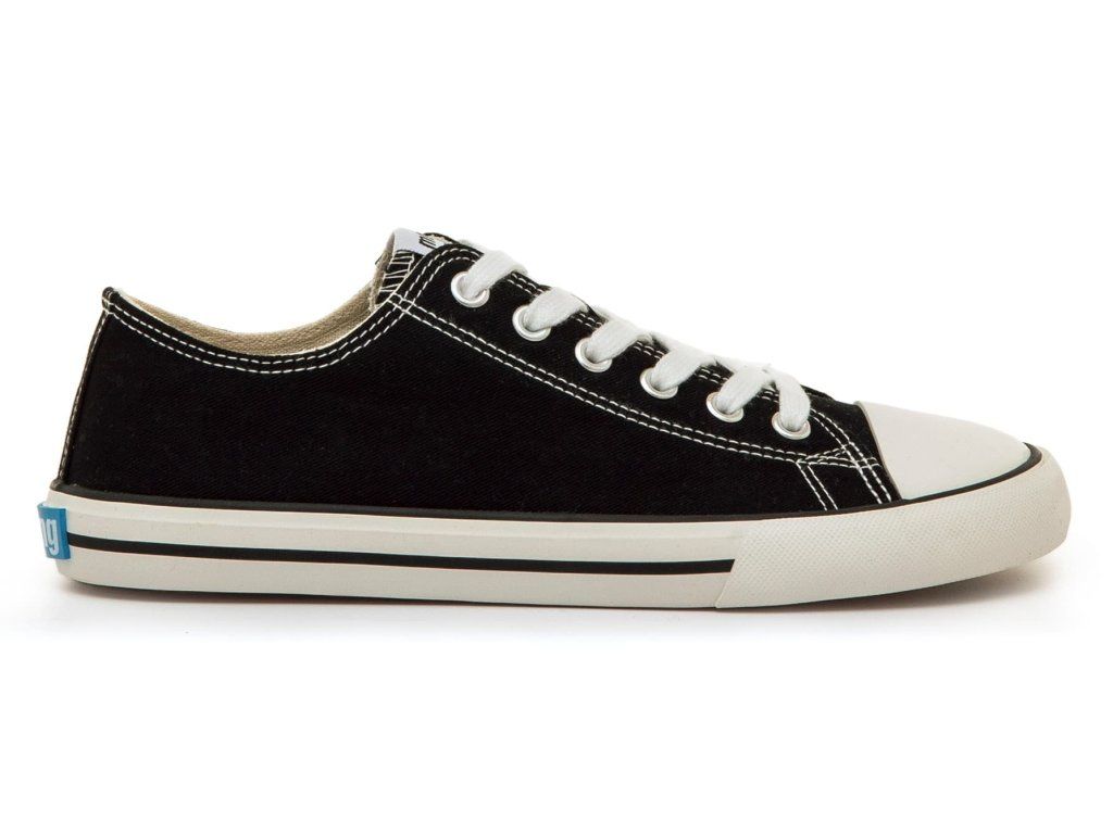 Barefoot tenisky MTNG Canver Black majú čistý a nadčasový dizajn v štýle Converse - čierny zvršok v kombinácii s bielymi detailmi, klasické biele šnúrky a ľahká flexibilná podrážka.