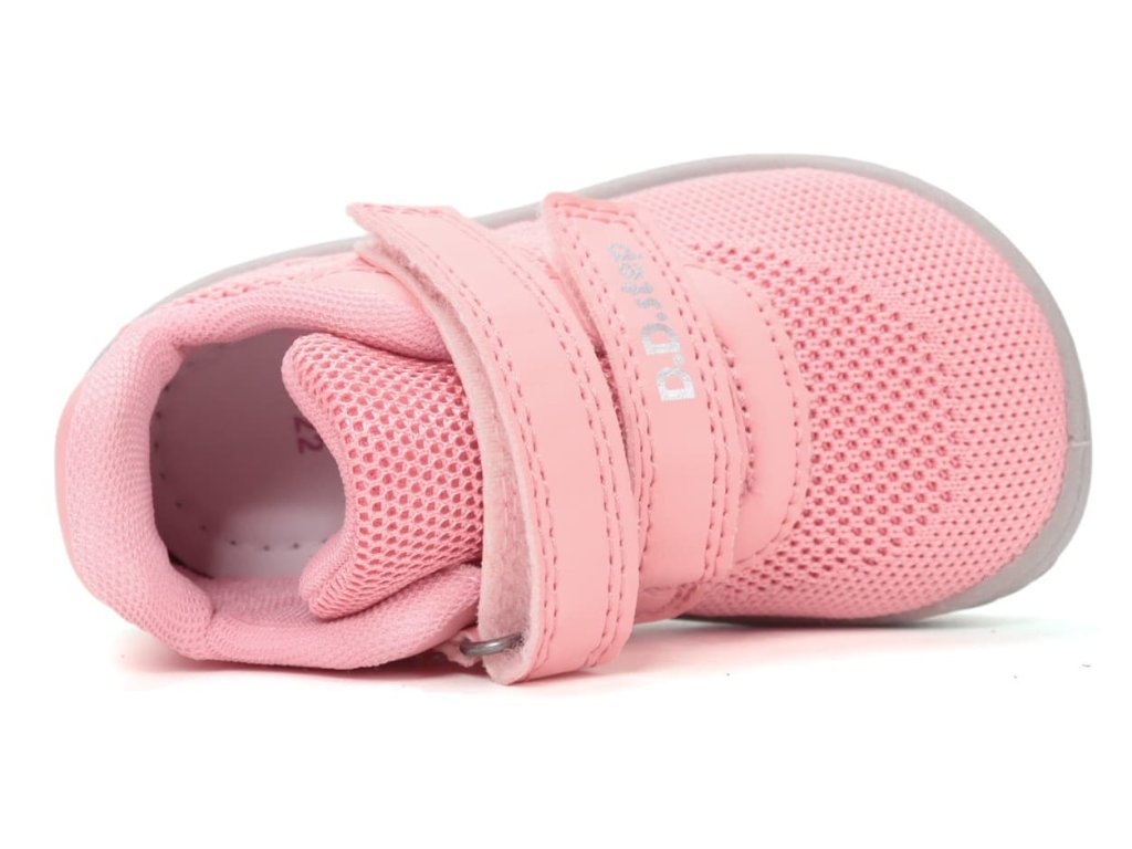 Barefoot textilné tenisky DD Step F093-61936C Baby Pink v ružovej farbe Pink sú vďaka textilnému zvršku aj podšívke perfektne priedušné a dieťatko ich unesí na ihrisko aj na prechádzky počas teplej jari i leta . Topánky sadnú skôr na širšie nôžky s dominantným palcom a vďaka velcro pásikom sa dajú perfektne utiahnuť na rôzne výšky priehlavku.