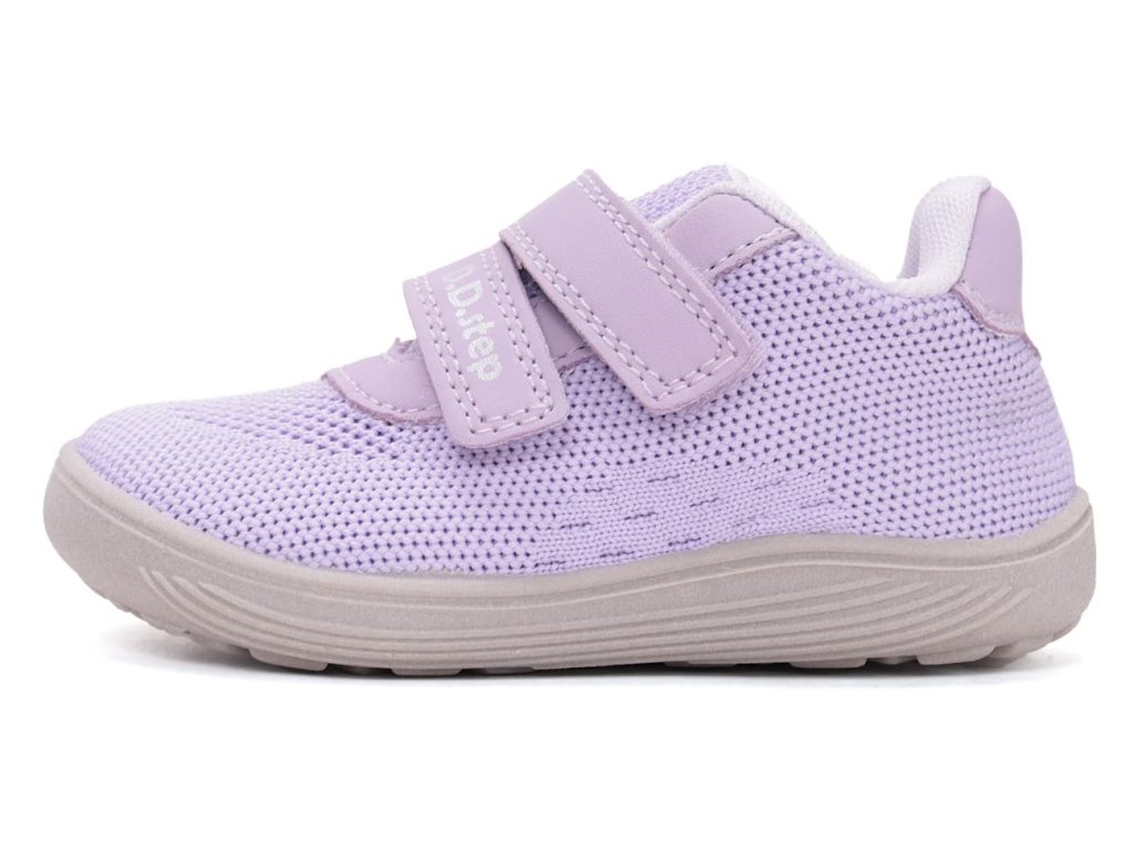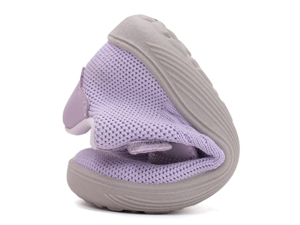 Barefoot textilný tenisk DD Step F093-61936D Lila vo fialkovej farbe sú vďaka textilnému zvršku i podšívke perfektne priedušné a dieťatko ich znosí na ihrisko aj na prechádzky počas teplej jari i leta . Topánky sadnú skôr na širšie nôžky s dominantným palcom a vďaka velcro pásikom sa dajú perfektne utiahnuť na rôzne výšky priehlavku.