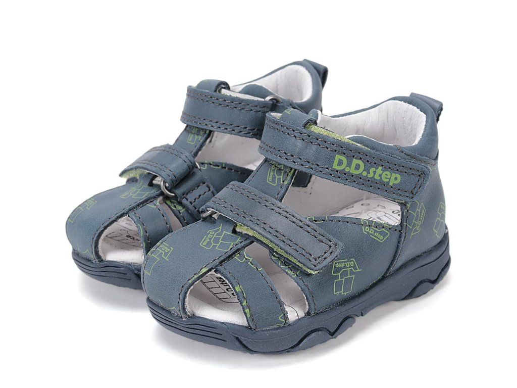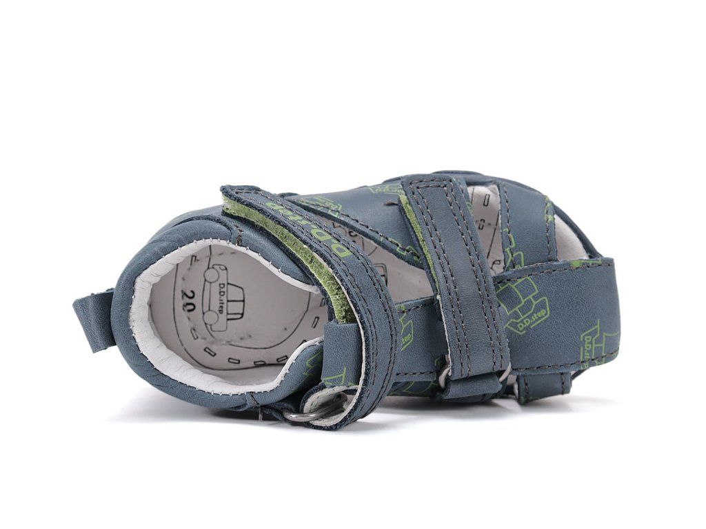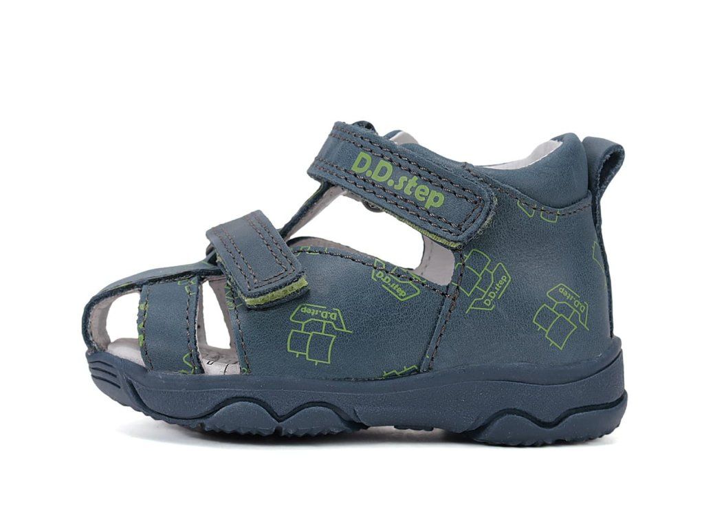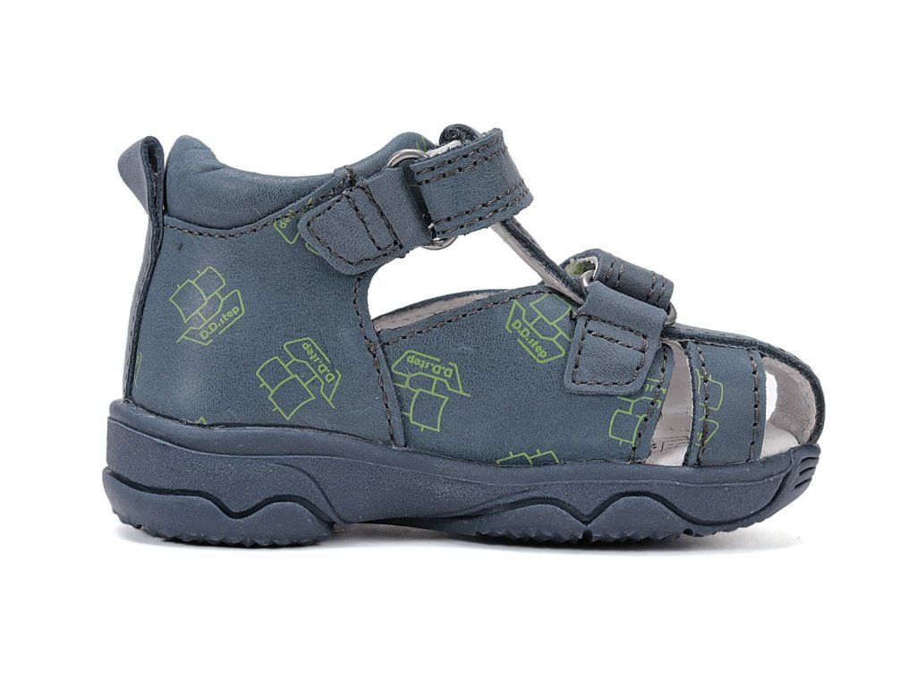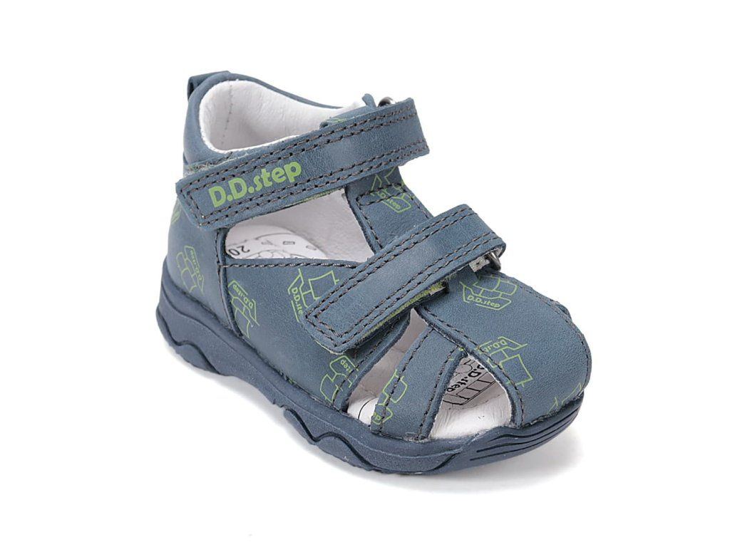 Pohodlné chlapčenské kožené sandálky DD Step G064-61383B Royal Blue v modrej farbe s motívom lodičiek .