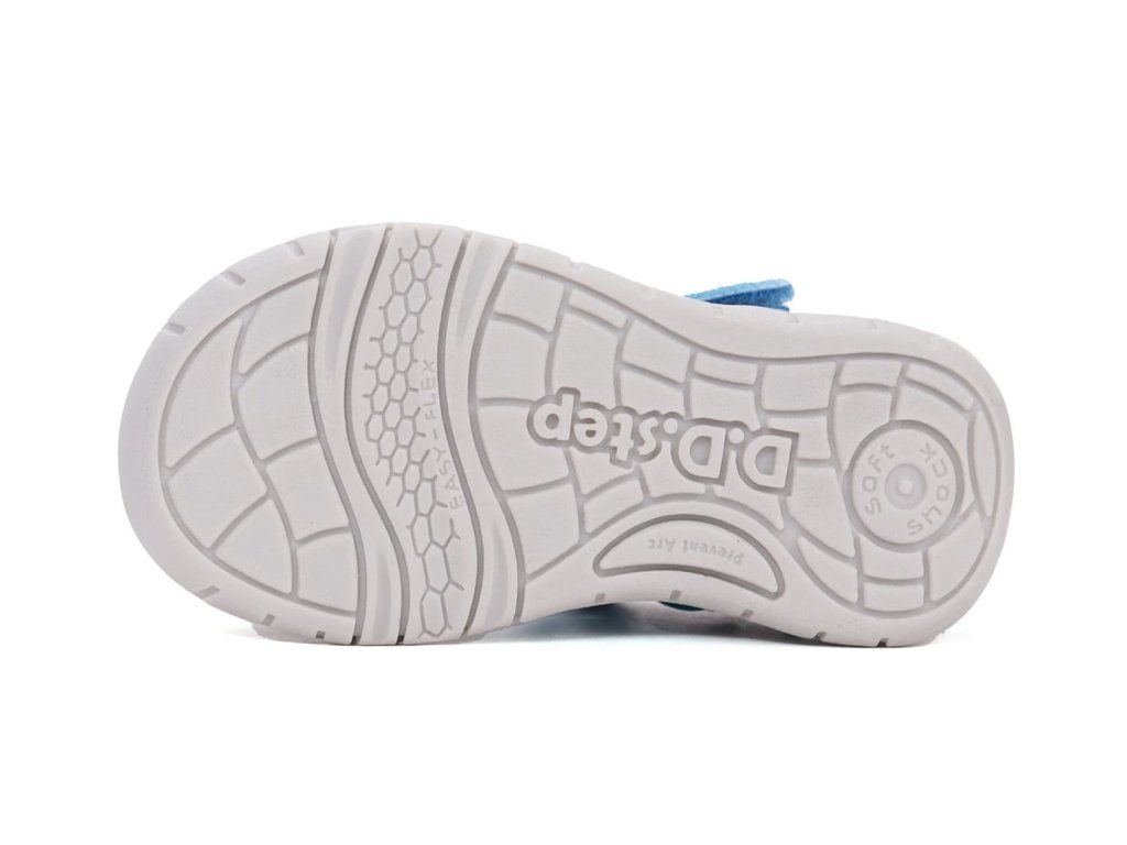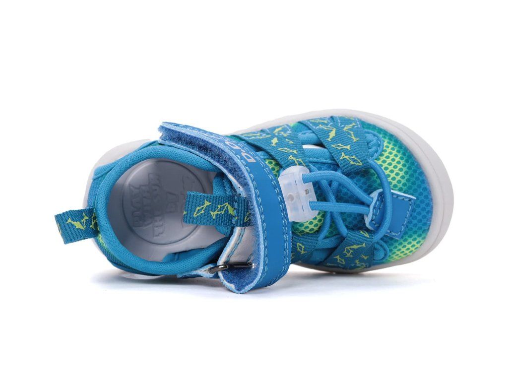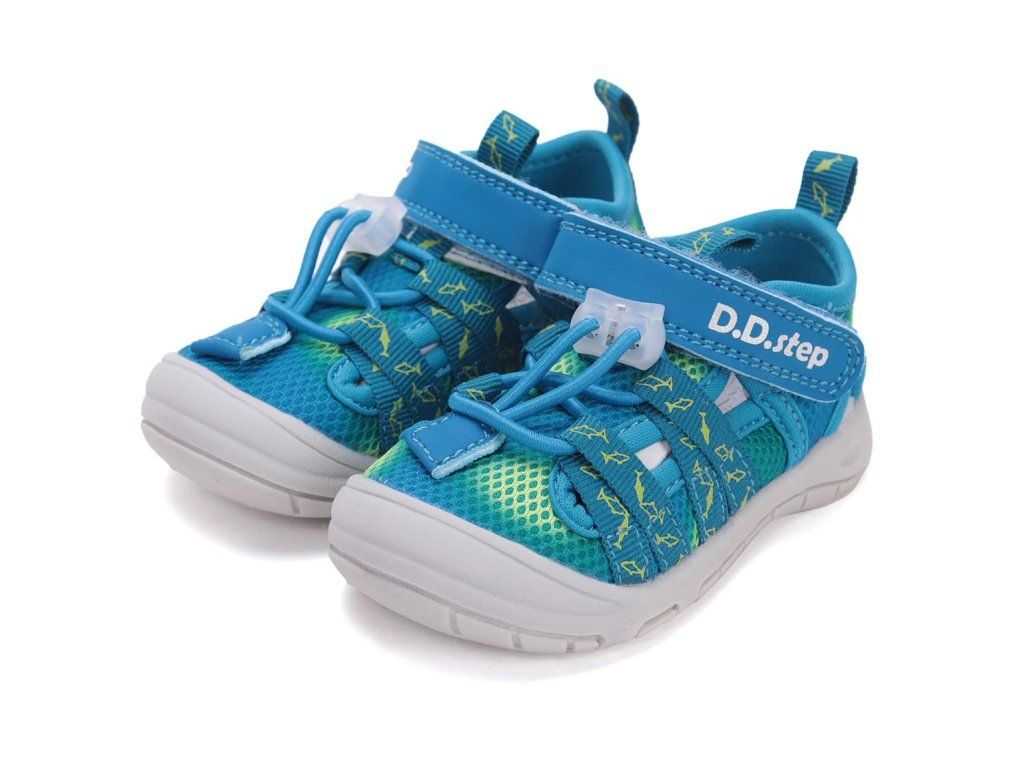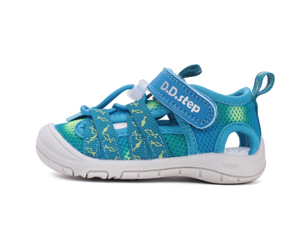 Detské sandále DD Step G065-61161 Marine v modrej farbe s rybami sa čoskoro stanú obľúbeným kúskom vašej ratolesti. Zvršok tvorí kombinácia priedušnej sieťoviny a syntetiky, podšívka je textilná. Sandálky sú veľmi ohybné a ľahké , perfektné na každodenné nosenie na ihrisko aj na prechádzky počas sparného leta.