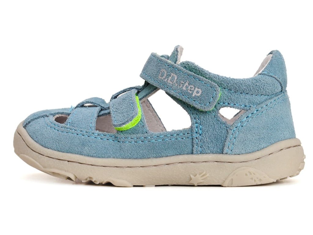 Kožené barefoot sandále DD Step G077-41565 Bermuda Blue sú novým modelom od DD Step vhodným na normálne široké nohy. Svetlomodrá brúsená koža s podrážkou šedej farby budú ladiť s celým šatníkom. Pohodlné, vetracie topánky na každodenné nosenie. Spĺňajú všetky požiadavky na barefoot obúvania.