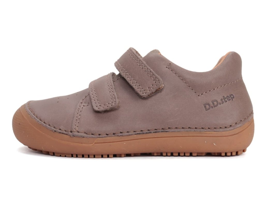 Inovované barefoot celoročky S063 - najohybnejšia topánka od DDstep - novo s nulovým dropom. DD Step novo označuje kožené topánky písmenom S na začiatku názvu, preto S063. Konkrétne DD Step S063-61983A Chocolate je z hladkej kože v hnedej farbe s praktickým okopom z brúsenej kože. Topánky sú z hladkej, dobre umývateľnej kože (len jazyk a okop sú z brúsenej kože).