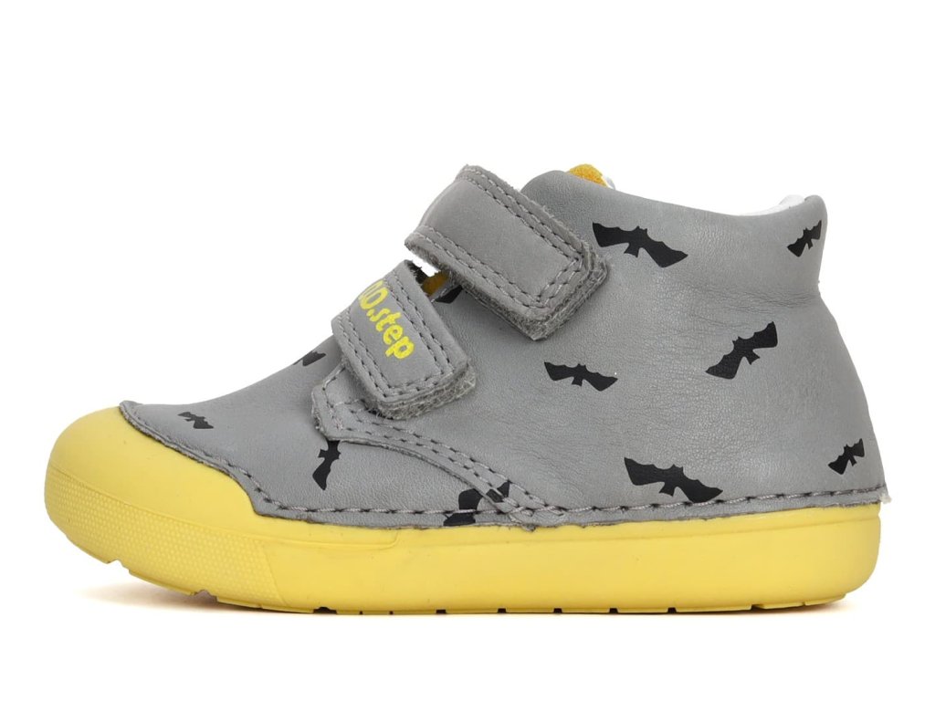 DD Step S066-41803B je v praktickom šedom prevedení s čiernymi netopiermi na žltej podrážke.