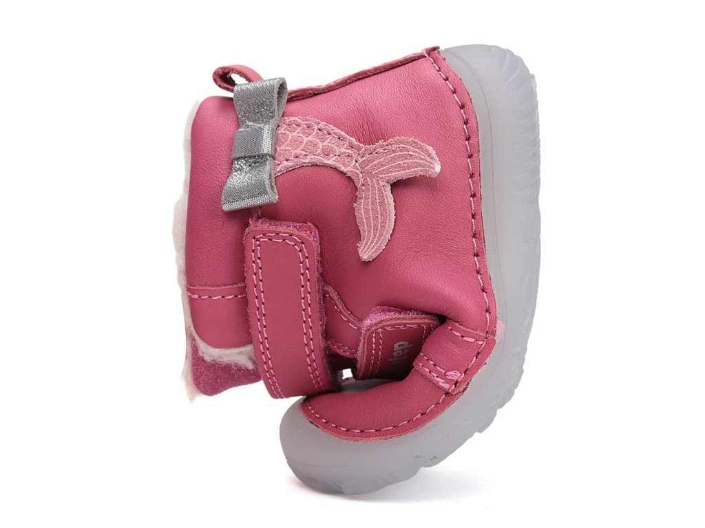 Dievčenské barefoot topánky DD Step W073-52684 Dark Pink - ružová farba s trblietavou mašličkou v štýle morskej panny. DD Step 073 - najohybnejšia a najviac barefootová topánka od DDstep. Rad 073 je tvarovo veľmi podobný 063, je ale výrazne širší - viď rozmery nižšie v popise. Topánky sú celokožené, končí kúsok nad členkom. Vnútri celej topánky je teplý kožúšok. Navyše topánky v tme fosforovo svietia!