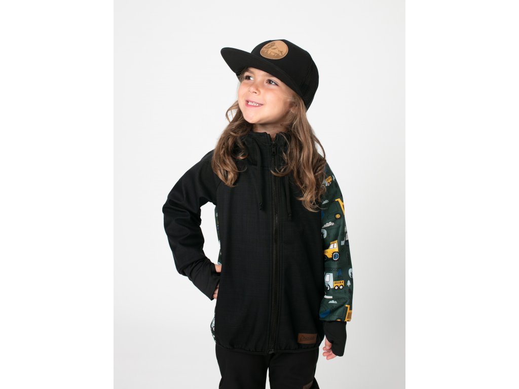 Detská softshellová bunda Drexiss Builders s motívom traktorov a nákladiakov je skvelým riešením do chladných aj daždivých dní od jari až do jesene . Bunda je jednovrstvová , má praktické náplety na rukávoch s dierou na palec , vysoký golier aj podšitú kapucňu so sťahovaním. Vrecká na poklady a kamienky sú samozrejmosťou.