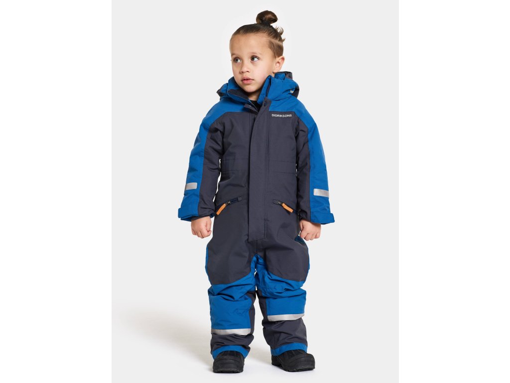 Detská zimná kombinéza Didriksons Neptun Classic Blue zo Švédska rozhodne nesklame – vydrží totiž všetko! Pre zimné športy, guľovačky a bobovačky stvorený! Dokonca aj viac ako jednu sezónu vydrží – má totiž rastúce rukávy a nohavice.