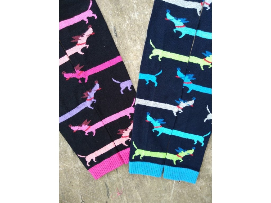 Detské bavlnené legíny, čiže pančucháče bez šľapiek s motívom farebných jazvečíkov :-)
