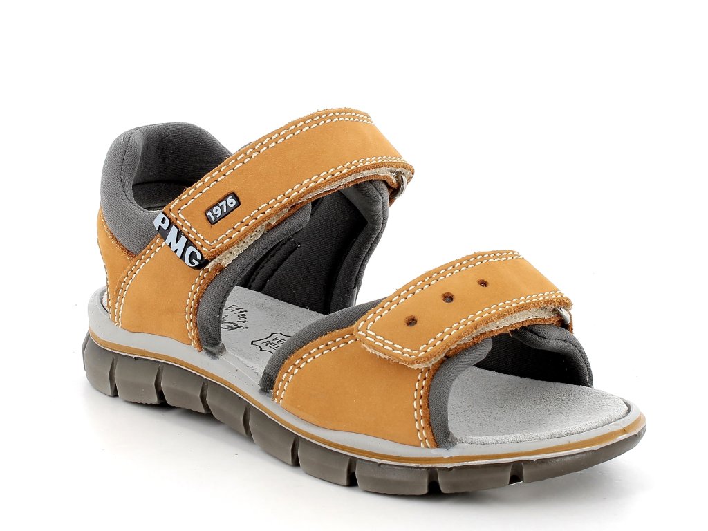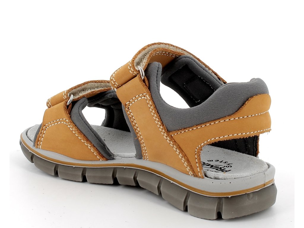 Detské sandále Primigi 5895911 s otvorenou špičkou a pohodlným mäkkým koženým došľapom. Elegantná farebná kombinácia hnedej a svetlo šedej farby.