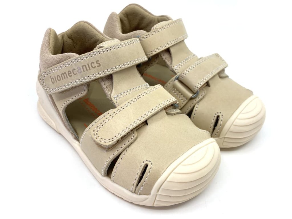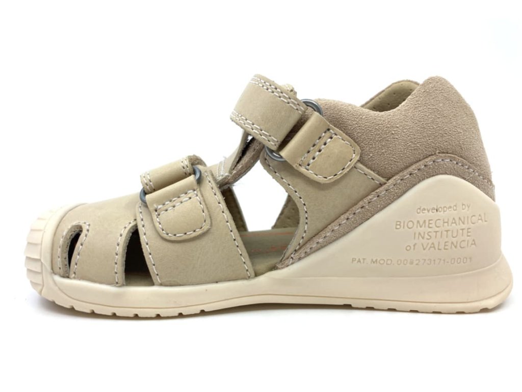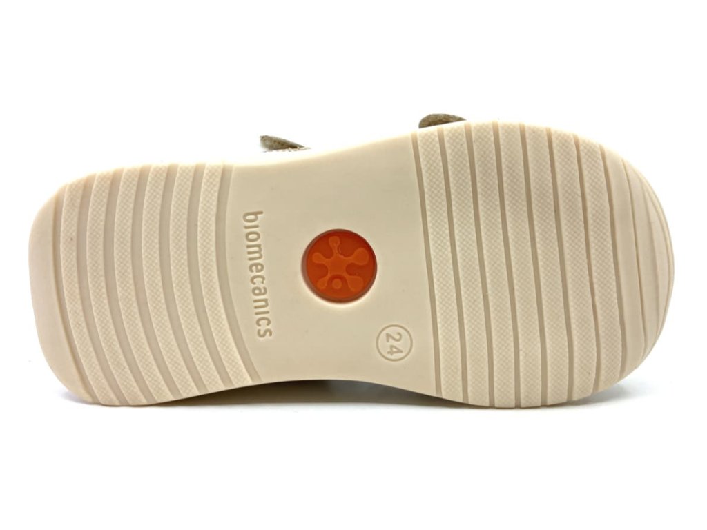 Detské sandálky Biomecanics 242126-B v koženej variante v pieskovej farbe v ynikajú naozaj príkladným spracovaním a patentovaným opätkom. Špeciálny Biomecanics opätok je za achilovkou znížený a neobmedzuje tak prirodzený pohyb nohy, pričom stále plní svoju funkciu a zabraňuje tak vtáčaniu päty - šmajdaniu. Vhodné pre začínajúcich chodcov.