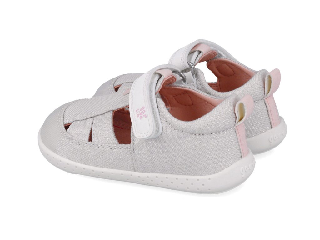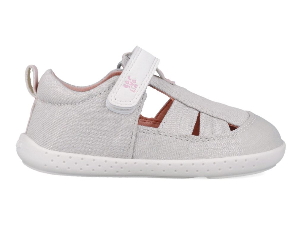 Dievčenské barefoot sandálky Garvalín 252348-D050 v bielej až krémovej farbe Blanco , ktorá sa trbliece , sú perfektne mäkké a ohybné. Zvršok tvorí priedušná textília , podšívku textil a stielku mikrovlákno pripomínajúce kožu. Špička je uzavretá a zosilnená o pogumovanú vrstvu, takže sa o prstíky vášho malého chodca báť nemusíte.