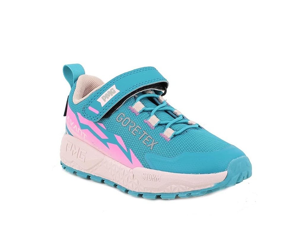 Detské tenisky Primigi 1431066 v kombinácii tyrkysovo modrej a ružovej farby . Podrážka je silnejšia , veľmi ľahká, má hrubú outdoorovú vzorku a antishock systém , ktorý tlmí otrasy pod pätou. Vďaka Gore-Tex membráne Vás počasie neprekvapí - topánky nepremoknú a zároveň dýchajú. Topánky sa hodia ako do mesta, tak do prírody :-) Jednoduché zapínanie na suchý zips, v spodnej časti je gumička, ktorá ale nejde nijako stiahnuť.