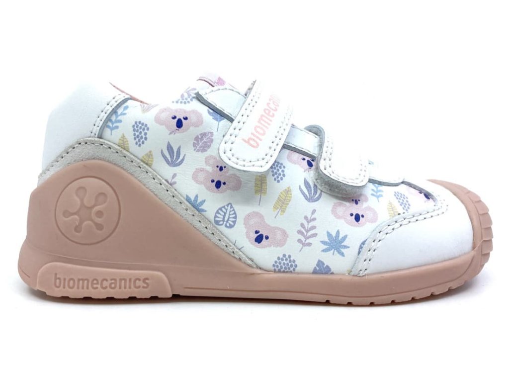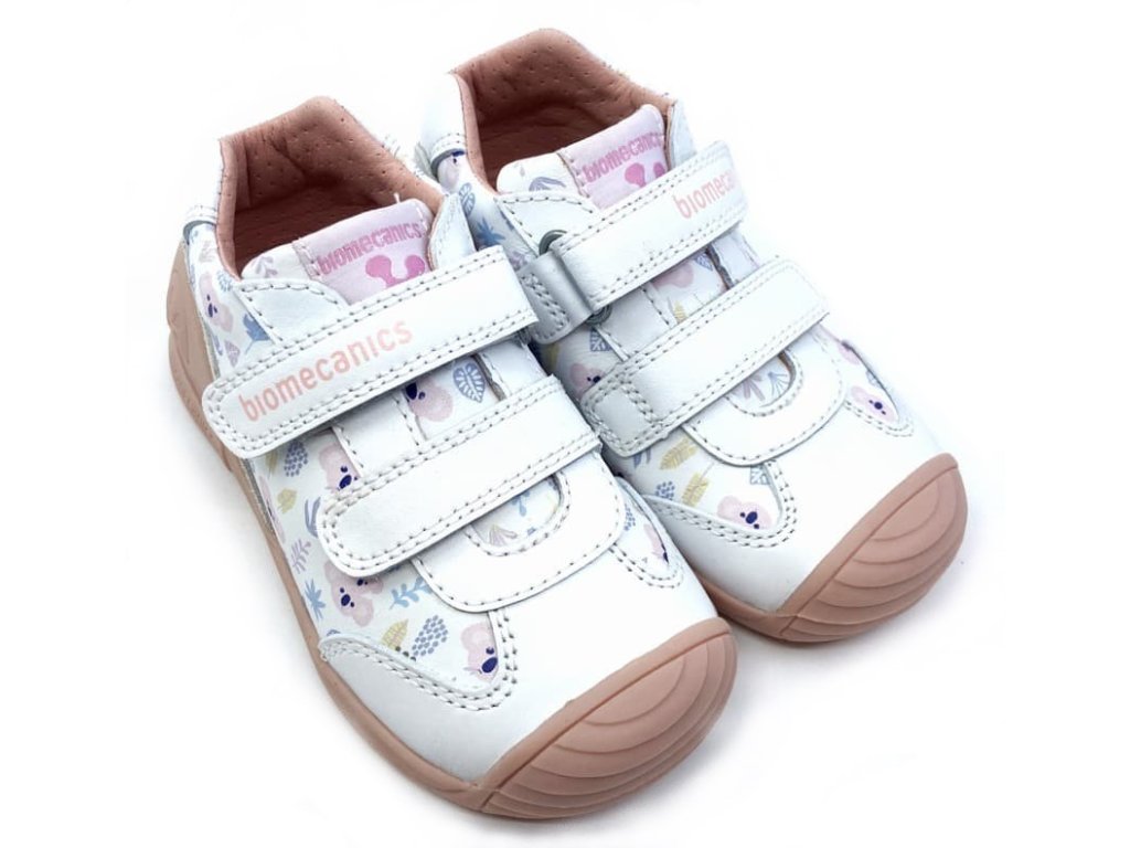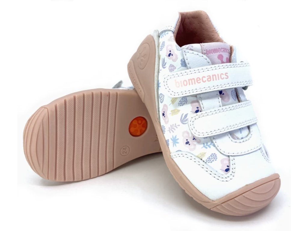 Detské celoročné topánky Biomecanics 242110-B Blanco v bielej farbe s potlačou. V ynikajú naozaj príkladným spracovaním a patentovaným opätkom. Špeciálny Biomecanics opätok je za achilovkou znížený a neobmedzuje tak prirodzený pohyb nohy, pričom stále plní svoju funkciu a zabraňuje tak vtáčaniu päty - šmajdaniu. Vhodné aj na prvé krôčiky.