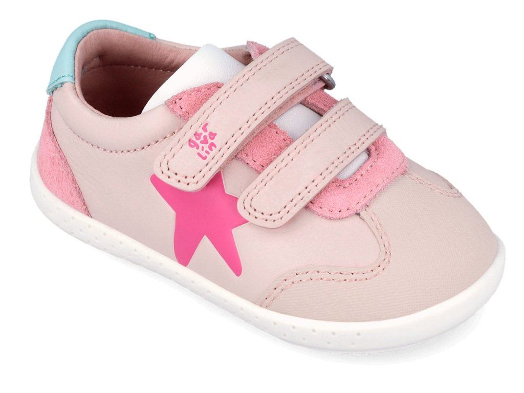 Detské topánky Garvalín 262320-D779 Cotton sú dievčenské kožené barefoot topánky v ružovej farbe. Zvršok tvorí hladká koža v kombinácii s brúsenou textíliou. podšívku textil a stielku príjemné mikrovlákno pripomínajúce kožu. Na špičke topánky je ochranná pogumovaná vrstva, aby topánky viac vydržali pri detskom zakopávaní.