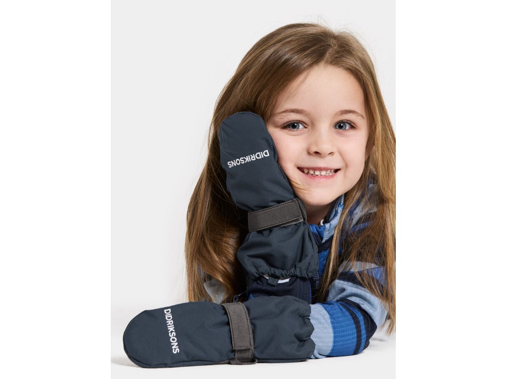 Detské zimné rukavice Didriksons Biggles ZIP v novom prevedení 8 v univerzálnej tmavo modrej farbe - rozopínacie palčiaky majú predĺžený lem na pretiahnutie cez rukávy bundy - tým sa sneh nedostane na zápästí ani pri najdivokejších snehových radovánkach :-) Navyše majú dlhý postranný zips a navyše majú dlhý postranný zips deťom.