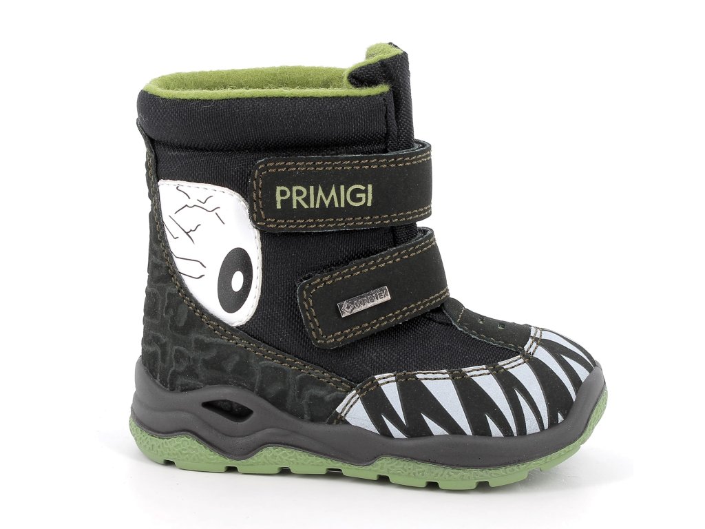 Detské zimné topánky Primigi 4860211 s motívom dráčika - v prednej časti má nos a na členku oči, ochrana päty potom pripomína dračiu kožu. Zaujmú tiež svojou "zimnou výbavou" - membránou Gore-Tex, vďaka ktorej sú nepremokavé a zároveň priedušné, teplým kožúškom vo vnútri, a praktickou gumovou ochranou špičky. V týchto topánkach budú nohy Vašich detí naozaj v teple a suchu. Sú veľmi ľahké a špička je dobre ohybná. Inovovaný veľmi obľúbený model.