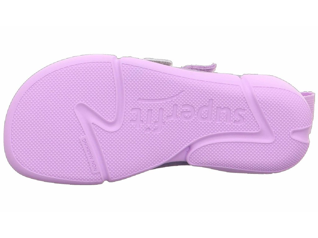 Dievčenské barefoot tenisky Superfit Vento 1-008201-8500 vo fialovej farbe so strieborným ligotom. Nízke barefoot tenisky vynikajú svojou ľahkou podošvou, flexibilitou a kvalitným spracovaním. Topánky sú vhodné skôr na teplejšiu jar a leto.