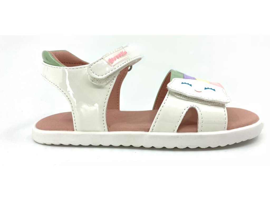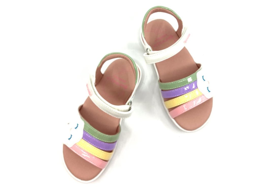 Dievčenské sandálky Garvalín 262431-B310 Blanco Y Multicolor . V dievčenskom motíve dúhy v bielej farbe. Vyrobené z kvalitných materiálov. Topánky majú stielku z mikrovlákna, príjemnú na dotyk. Vnútorná konštrukcia topánky je z kože. Sandálky ide dobre dotiahnuť dvoma suchými zipsami - cez priehlavok aj členok.