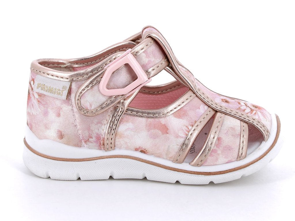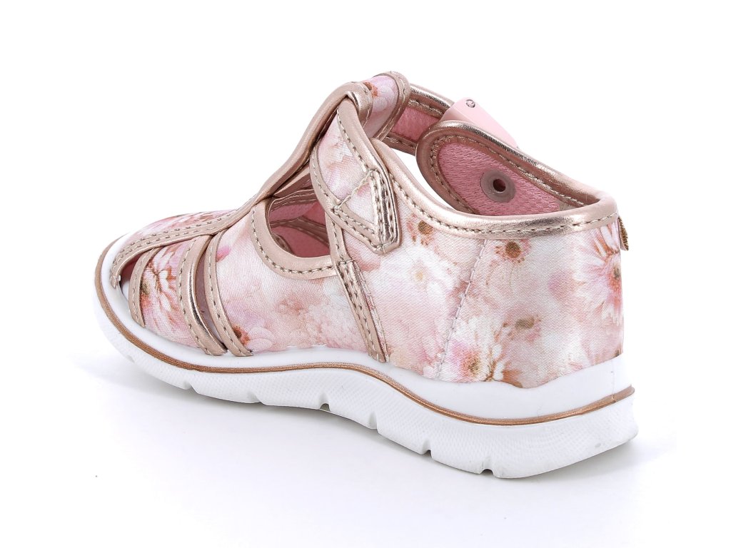 Elegantné, dievčenské sandálky s krytou špičkou chrániacou detské prstíky proti skopnutiu. Zvršok tvorí satén s romantickou ružovou potlačou - názov farby "romantic rosa" je dokonale výstižný. Podšívka je textilná, zo sieťoviny, ktorá absorbuje vlhkosť nožičiek. Stielka je kožená, antishock systém tlmí otrasy.