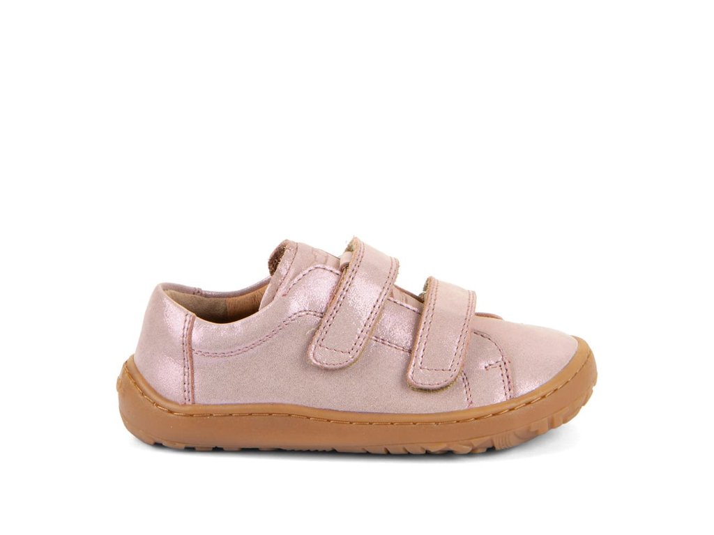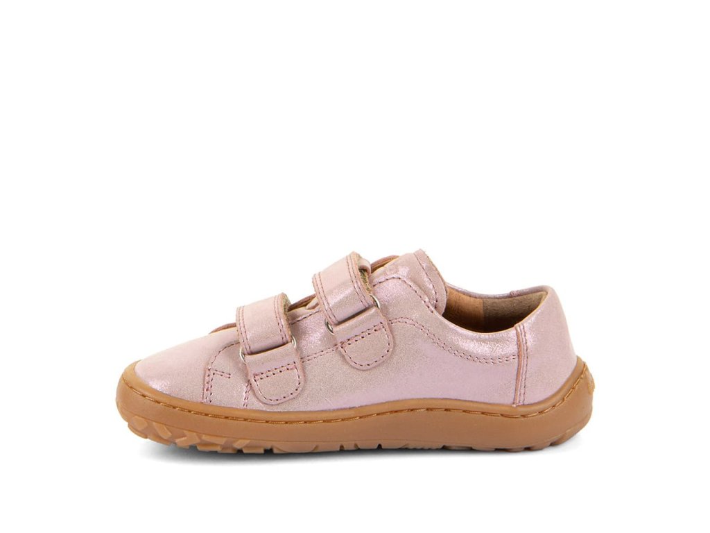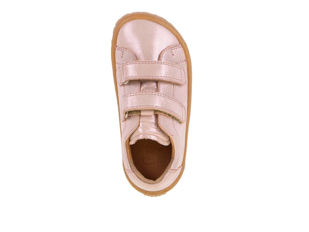 Štýlové barefoot tenisky Froddo G3130284-9 Pink Shine v obľúbenej trblietavej úprave . Kombinujú štýlový dizajn a ľahké obúvanie aj pre deti. Vrchná časť topánky je kompletne kožená, a rovnako tak aj podšívka je z jemnej kože. Praktické zapínanie na suchý zips umožňuje ľahké obúvanie aj deťom. Podrážka je z prírodnej gumy.