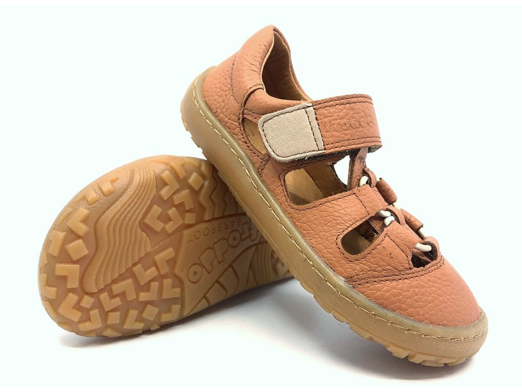 Štýlové kožené barefoot sandále Froddo G3150242-2 Cognac so zapínaním na suchý zips pre ľahké obúvanie. V spodnej časti je gumička, ktorá ale nemožno nijako utiahnuť. Pravá prírodne farbená koža vo svetlo hnedom odtieni a podrážka z prírodnej gumy s jemnou vzorkou.