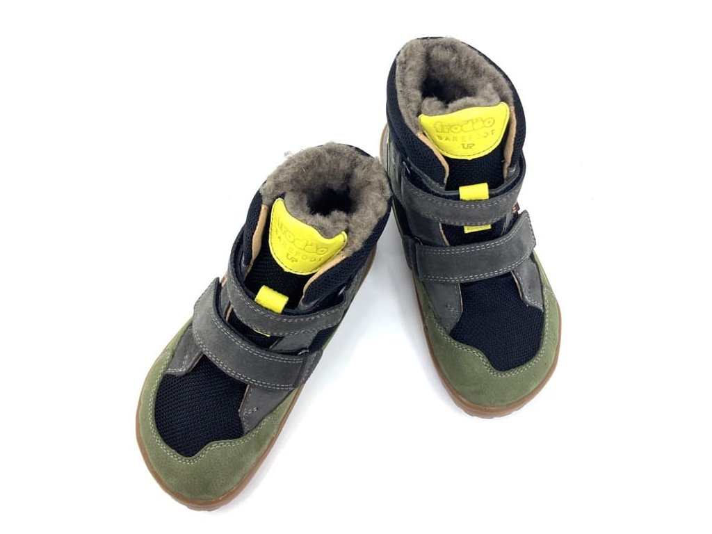 Vyššie zimné topánky Froddo Barefoot UP TEX Winter G3160252-2 Grey/Black majú vonkajšiu časť čiastočne z kože pre optimálnu odolnosť a textilných materiálov pre maximálnu možnú priedušnosť. Nepremokavosť zaisťuje membrána Froddo-Tex. Zateplené pravou ovčou vlnou - podšívka aj stielka.