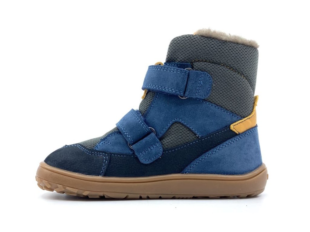 Vyššie zimné topánky Froddo Barefoot UP TEX Winter G3160252-3 Denim majú vonkajšiu časť čiastočne z kože pre optimálnu odolnosť a textilných materiálov pre maximálnu možnú priedušnosť. Nepremokavosť zaisťuje membrána Froddo-Tex. Zateplené pravou ovčou vlnou - podšívka aj stielka.