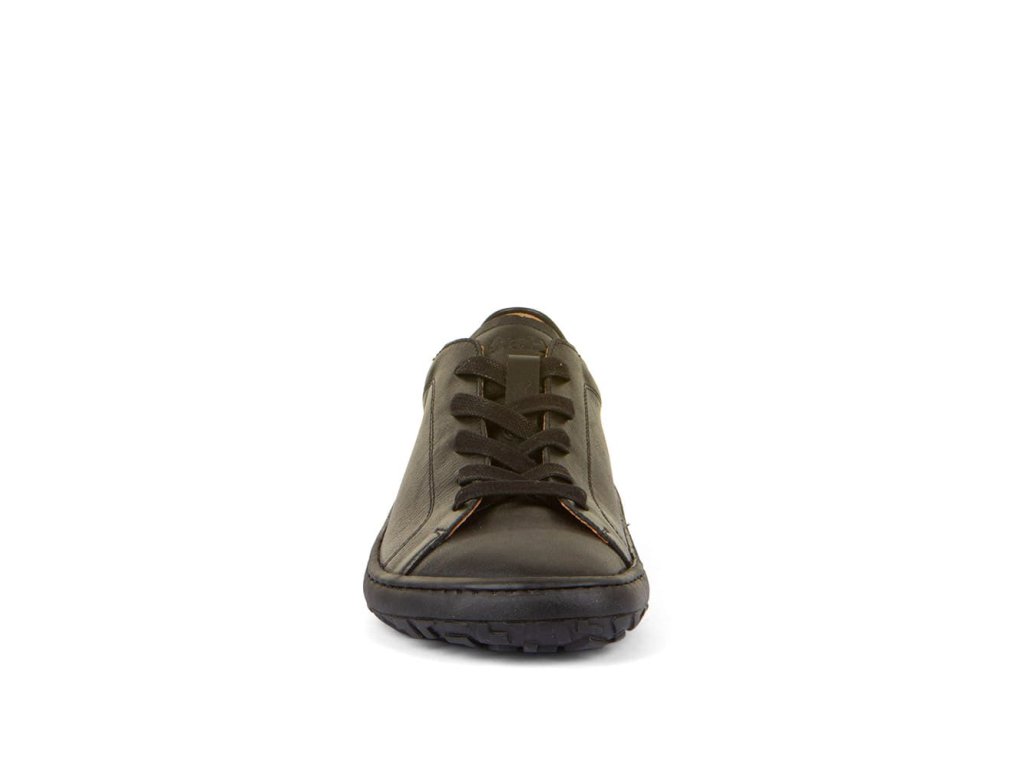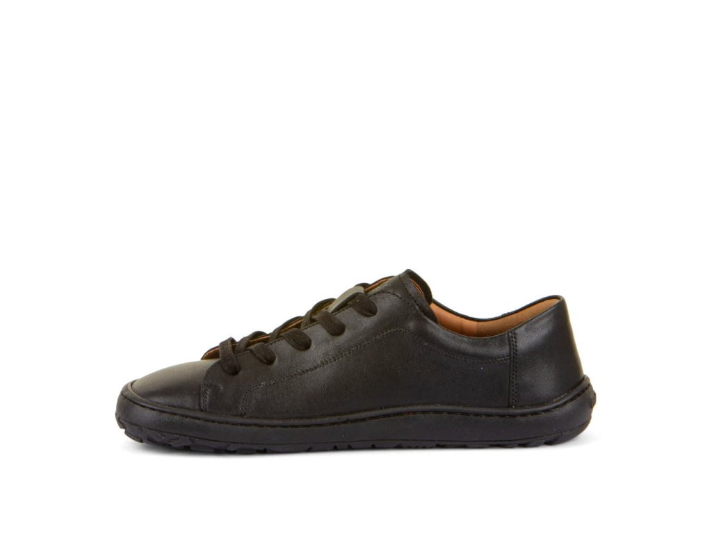 Kožené šnurovacie barefoot tenisky Froddo Laces G3130294-1 Black majú jednoduchý a štýlový dizajn - čierna hladká koža s klasickými šnúrkami a podrážka z prírodnej gumy v čiernej farbe.