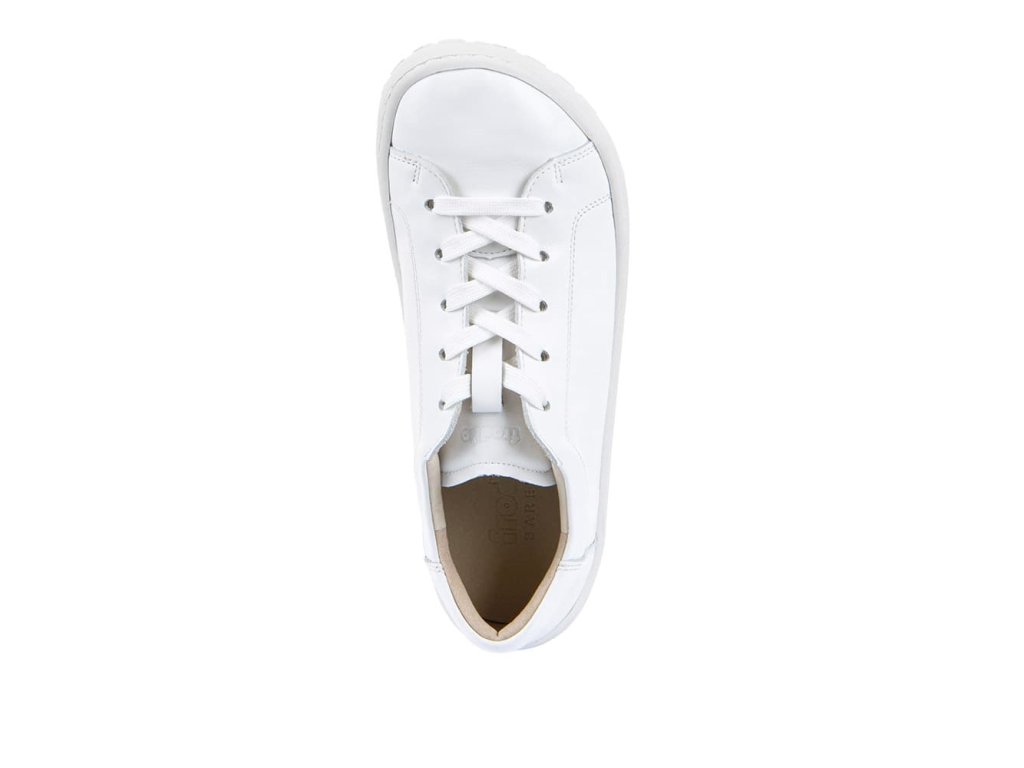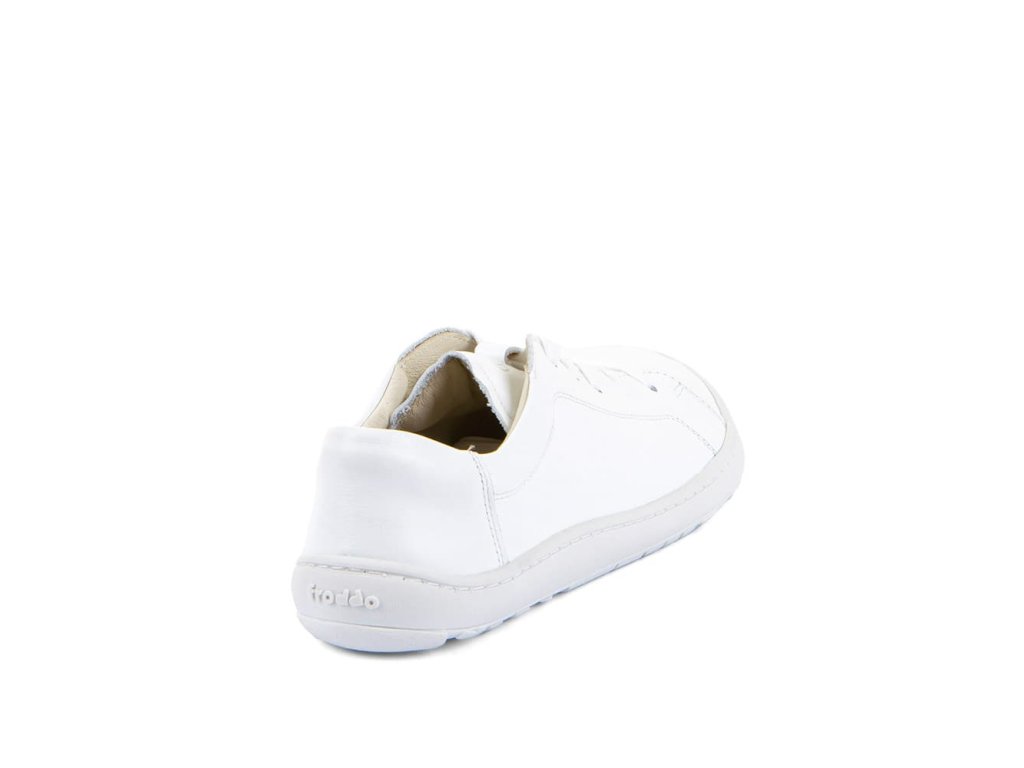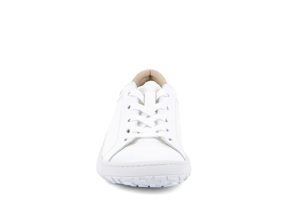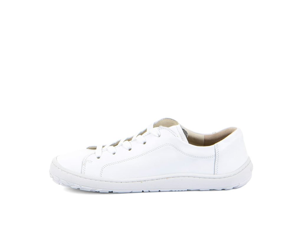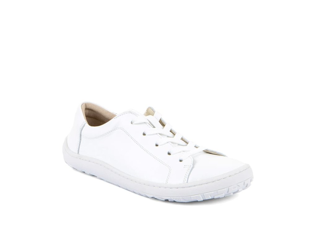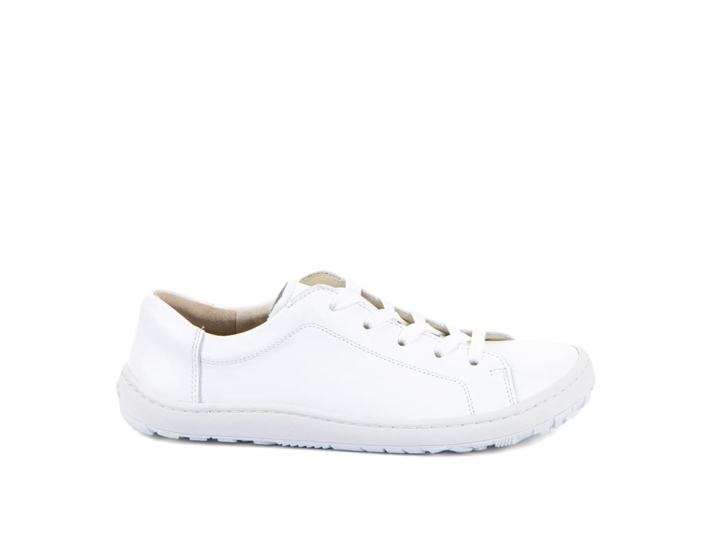 Kožené šnurovacie barefoot tenisky Froddo Laces G3130294 White majú jednoduchý a štýlový dizajn - biela hladká koža s klasickými šnúrkami a podrážka z prírodnej gumy v bielej farbe.