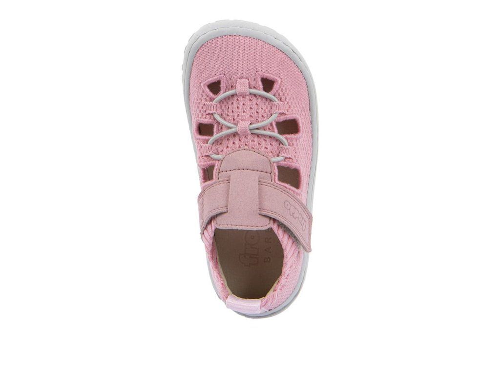 Štýlové textilné barefoot sandále Froddo G3150296-6 so zapínaním na suchý zips pre ľahké obúvanie. V spodnej časti je gumička, ktorá ale nemožno nijako utiahnuť. V dievčenskej ružovej farbe. Topánky majú flexibilnú podrážku z prírodnej gumy s jemnou vzorkou.
