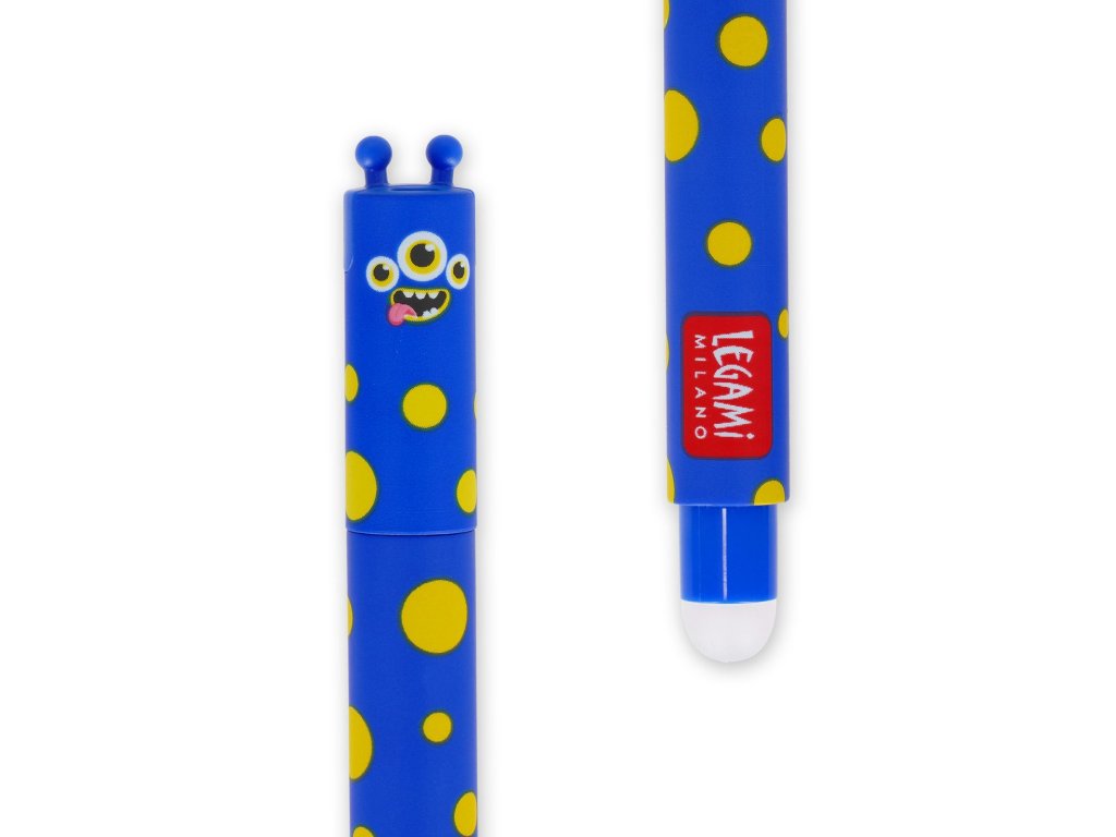 Gumovacie pero Legami sa u Vášho potomka stane veľmi skoro tým najobľúbenejším - nielen, že má originálny dizajn a páči sa, ale napísaný text sa dá kompletne vygumovať! Gumovanie funguje na princípe tepelnej reakcie – atrament sa trením zahreje a stane sa neviditeľným. Na vygumované miesto tak nie je problém ihneď znova písať.