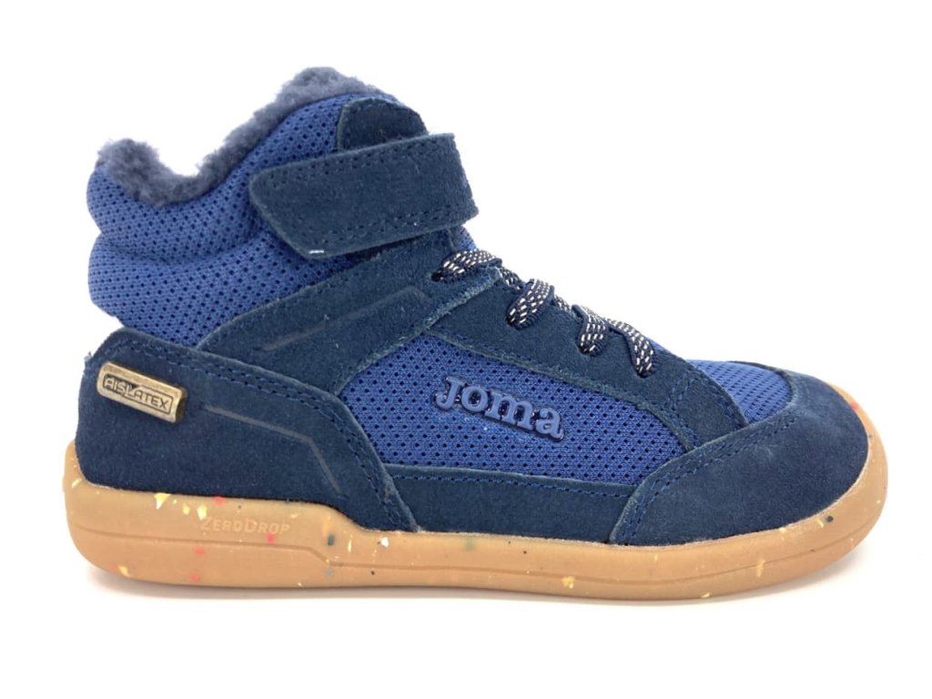 Členkové barefoot tenisky Joma Coco Junior barefoot Navy Blue majú vonkajšiu časť čiastočne z brúsenej kože pre optimálnu odolnosť a čiastočne textilnú pre maximálnu možnú priedušnosť. Nepremokavosť zaisťuje membrána Aislatex.