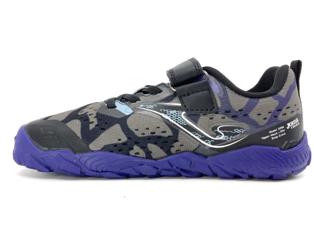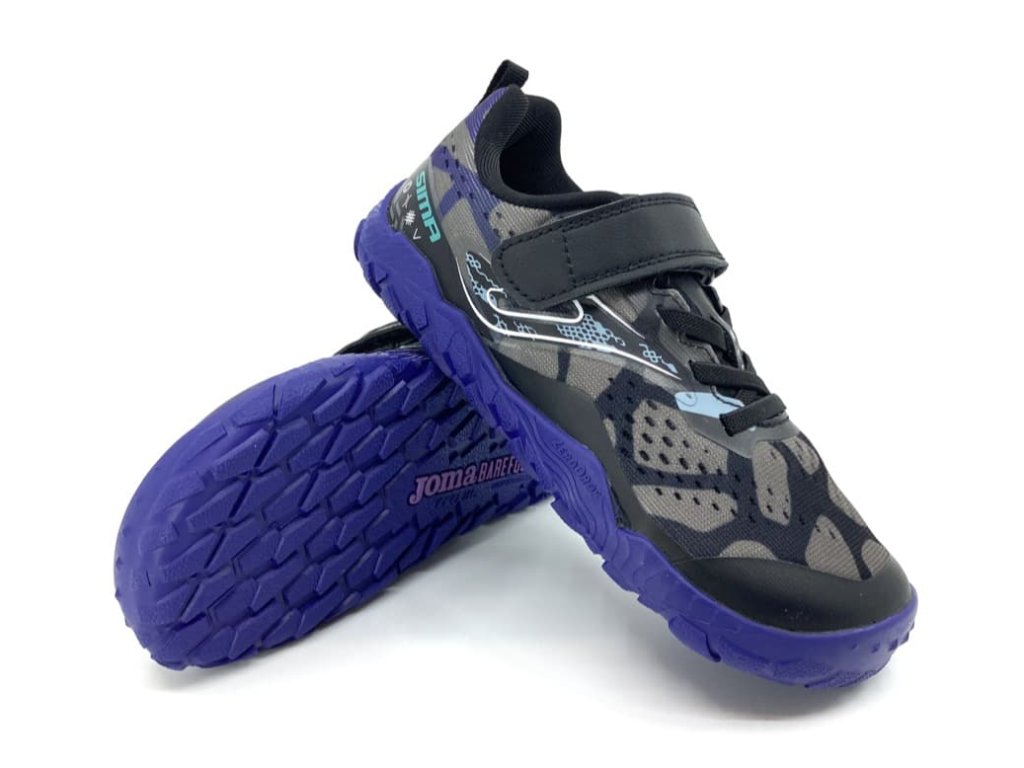 Barefoot topánky Joma Sima JR Barefoot 2631 Black. V čierno-sivej farbe s fialovou podrážkou. Tieto športové tenisky sú vhodné na športové vonkajšie aktivity, behanie, ale aj na normálne chodenie vonku. Topánky majú technológiu, ktorá zaisťuje maximálnu priedušnosť a odvod potu. Vhodné od jari až do jesene.