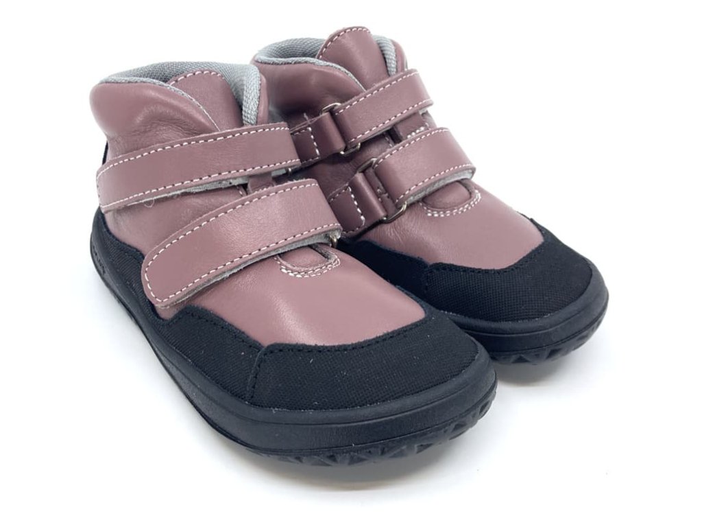 Detské celoročné kožené barefoot topánky Jonap Bella MV v staroružovej farbe sú vyššieho strihu, končia tesne nad členkom.