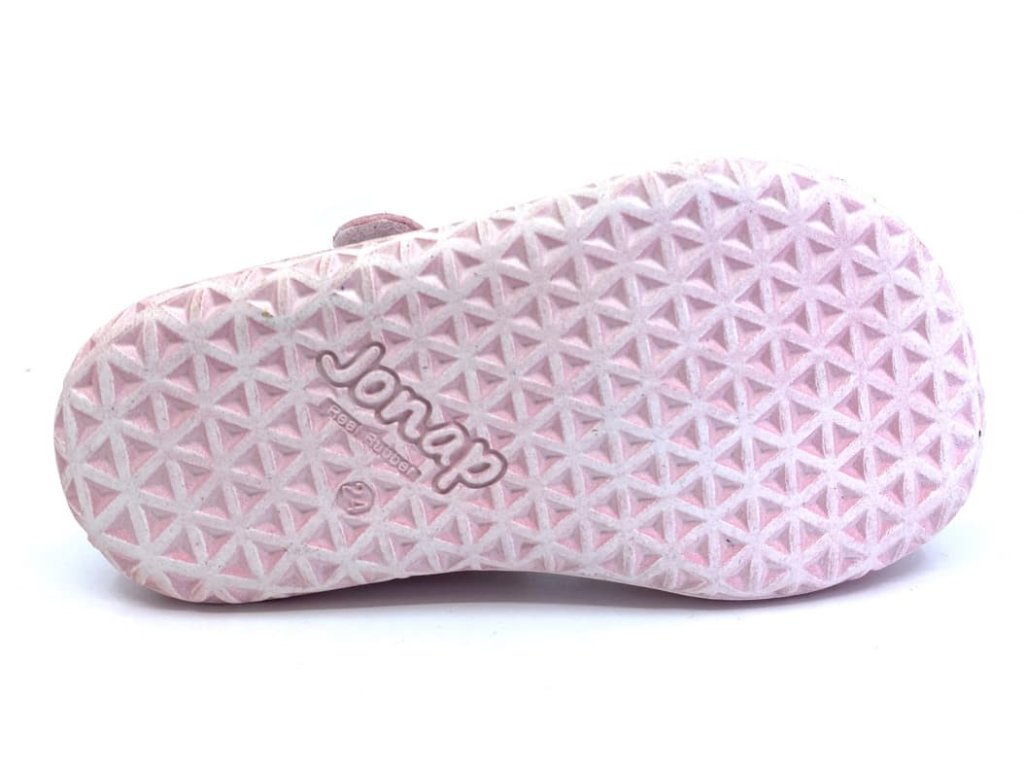 Detské barefoot sandálky Jonap Fela s textilnou podšívkou a zvrškom z mikrovlákna, na podrážke Jonap B1. Vo svetlo ružovej farbe s praktickou, šedou špičkou.
