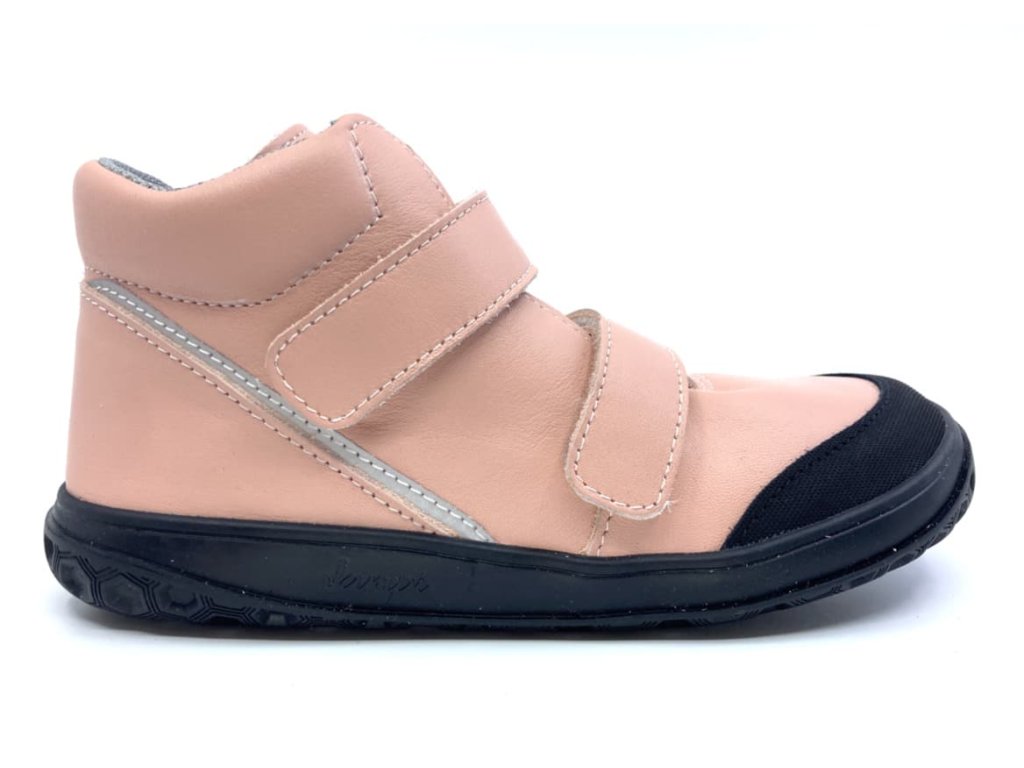Detské celoročné kožené topánky Jonap Jolla v pleťovej farbe. Tento model patrí do radu Jonap Jampi - rad pre väčšie deti od veľkosti 31 a vyššie. Špičky topánok sú lemované praktickým pogumovaným koženým okopom s jemným vzorom pre väčšiu výdrž a zároveň zvládnu napríklad aj mokrú trávu. Topánky sú vyššieho strihu, končiace tesne nad členkom. Hladká koža pre praktickú údržbu, vo vnútri príjemná textilná podšívka pre väčší komfort pri nosení. Praktické suché zipsy umožňujú reguláciu v členku aj priehlavku. Podrážka je mäkká a ohybná všetkými smermi. Vyberateľná penová stielka s nášľapom z mikrovlákna je bez tvarovania. Reflexný prvok pre lepšiu viditeľnosť.