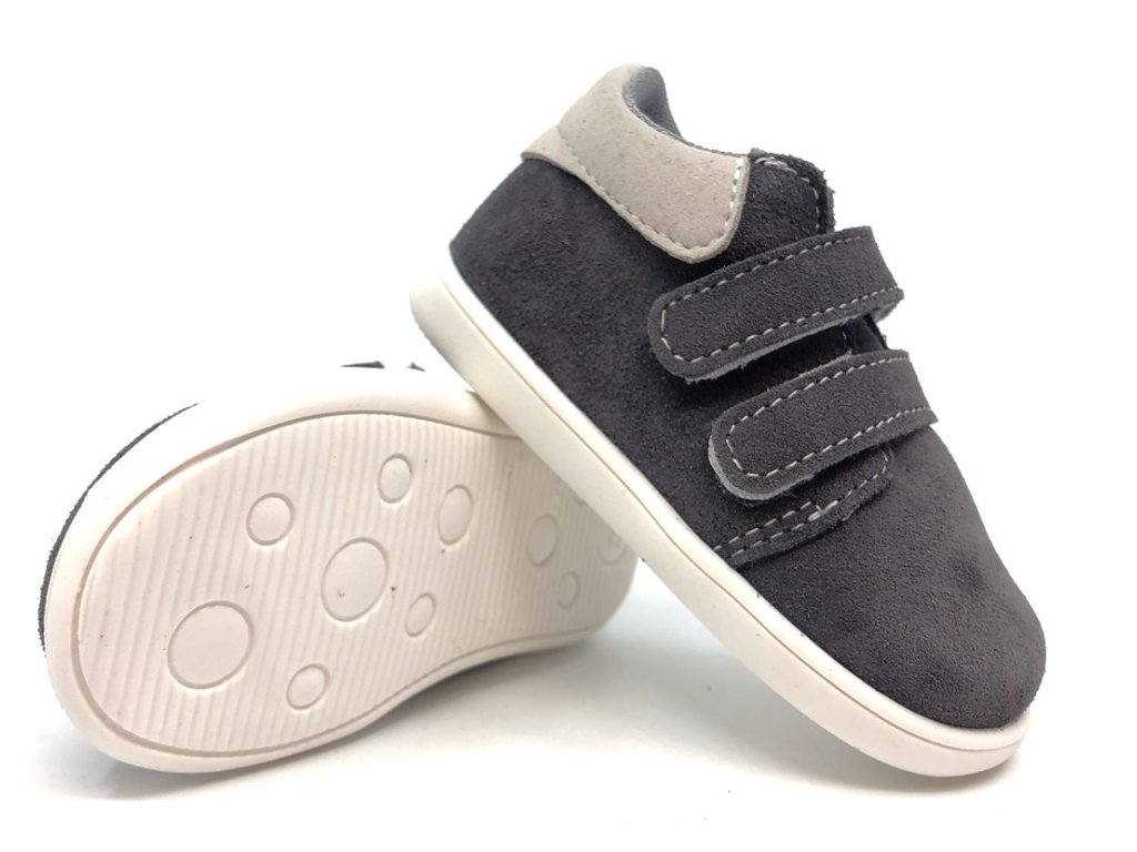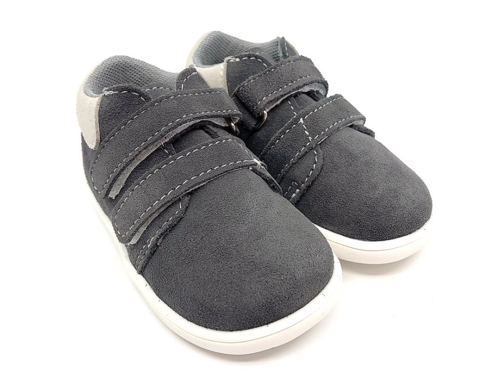 Detské topánky na prvé krôčiky Jonap Kid SV šedá. Mäkké, priestranné na detskú nôžku, ale pritom so spevneným opätkom na podporu správneho postavenia nohy a členku. Podrážka je mäkká, ohybná predovšetkým v smere chôdze. Vďaka dvom suchým zipsom sa topánky pohodlne obúvajú a regulujú v oblasti členku aj priehlavku. Topánka sa dá krásne roztvoriť, a dobre sa tak obúvajú aj deťom s vyšším priehlavkom. Topánky sú z brúsenej kože, ktorá veľmi dobre odoláva detskému zakopávaniu.