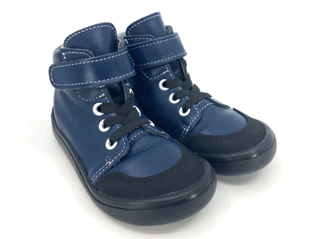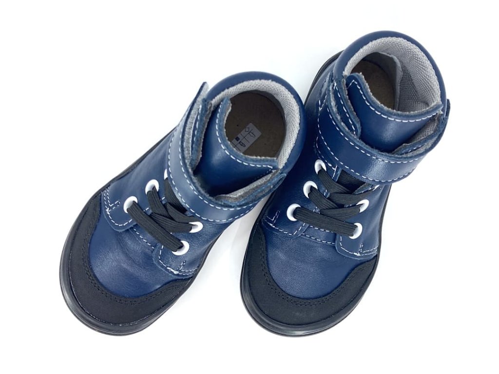 Celoročné barefoot topánky Jonap Polly Modrá sú perfektná voľba na jeseň a chladnejšia jar - končí nad členkom. Zapínanie na suchý zips v hornej časti, na priehlavku je gumička imitujúca šnúrky. Odolná ochrana na špičke proti okopaniu z pogumovanej kože a flexibilná podrážka z pravej gumy s miernym vzorom.