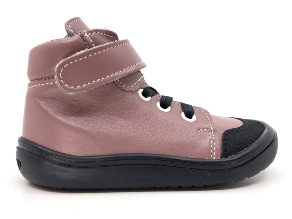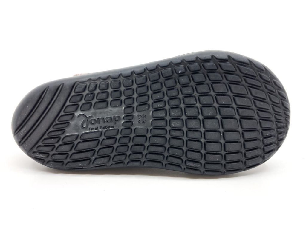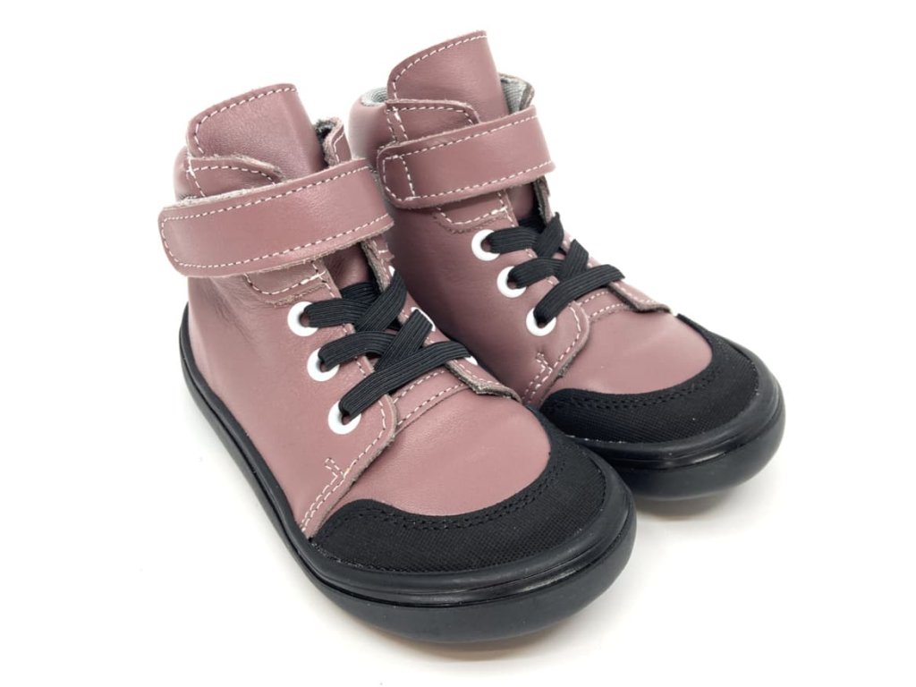 Celoročné barefoot topánky Jonap Polly Roseate sú perfektná voľba na jeseň a chladnejšia jar - končí nad členkom. Zapínanie na suchý zips v hornej časti, na priehlavku je gumička imitujúca šnúrky. Odolná ochrana na špičke proti okopaniu z pogumovanej kože a flexibilná podrážka z pravej gumy s miernym vzorom.