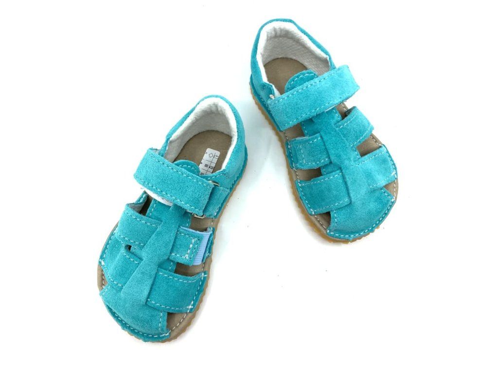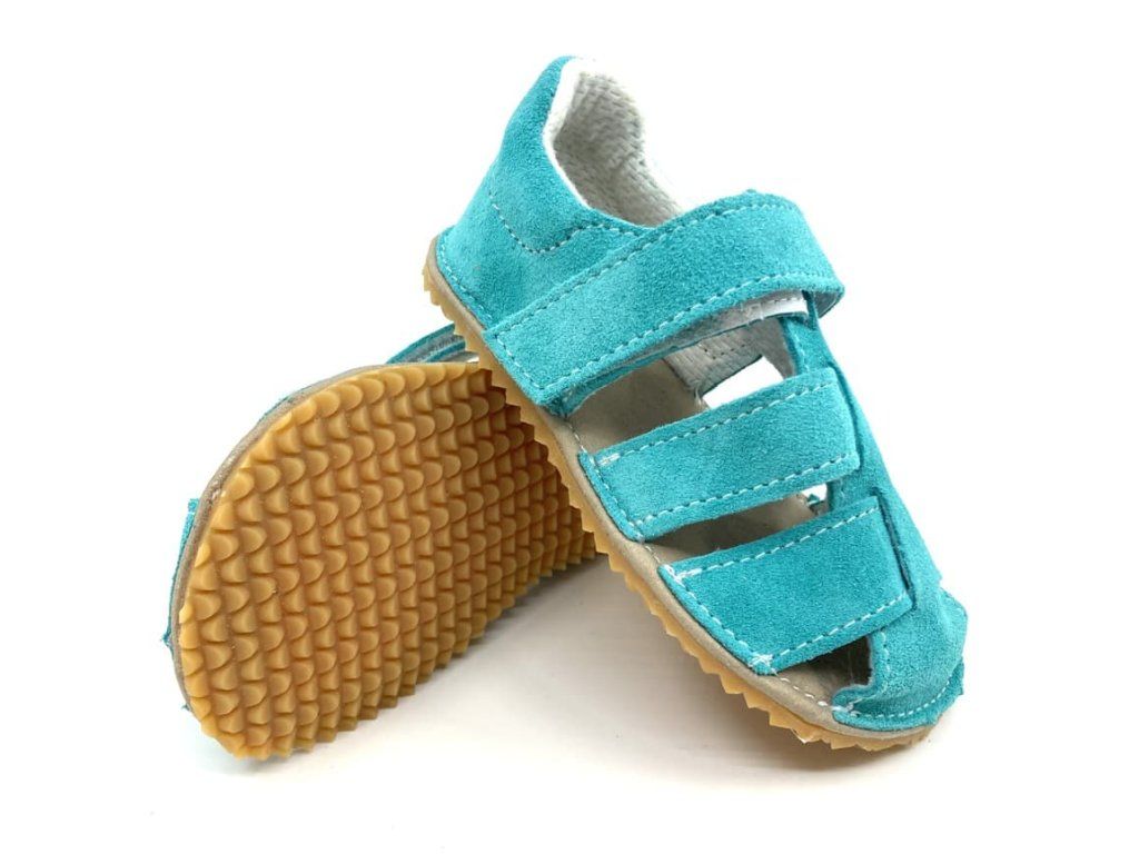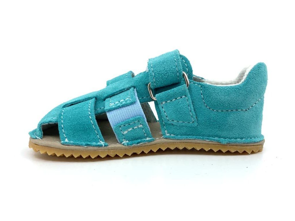 Ľahké, kožené barefoot sandále Jonap Zula v mintovej farbe s textilnou podšívkou, ktorá absorbuje pot. Sandálky majú mäkkú stielku z mikrovlákna a spevnený opätok. Spĺňajú požiadavky na barefoot obúvania.