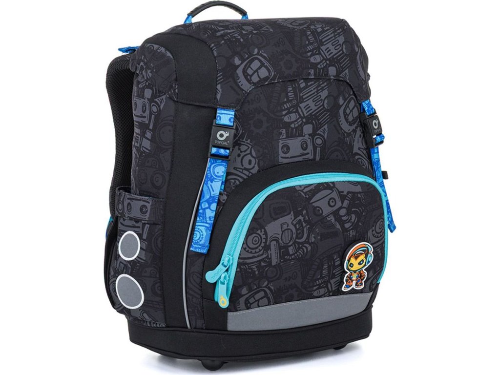 Technický motív s robotmi, prevodmi a mechanickými prvkami zaujme všetkých malých fanúšikov strojov a šikovných vynálezov. Tmavšia grafika v kombinácii s tyrkysovými detailmi pôsobí moderne a nadčasovo. Súčasťou aktovky je aj pevne držiaci magnet v tvare malého robota, ktorý doladí celý vzhľad a dodá mu hravý prvok. Vymeniteľné magnety ZMAG je možné tiež dokúpiť u nás.