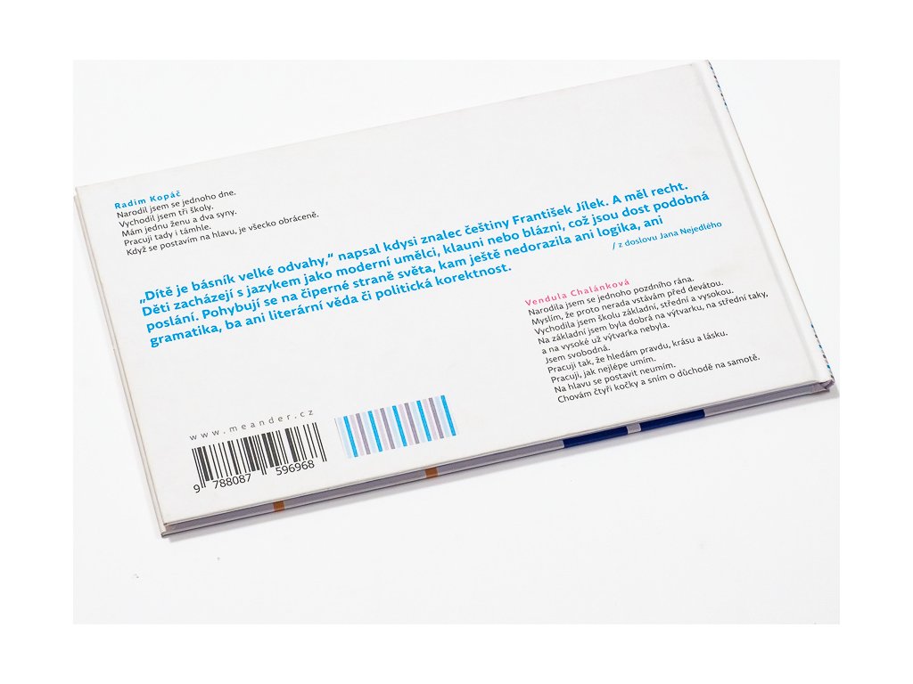 Vydavateľstvo Meander vydáva experimentálnu knihu Dnes dieťa. Čo deň, to jedna detská prehovorka. Dieťa je čisté ako ľalie, úprimné a pravdivé. Povie Vám toho o svete viac ako noviny, televízie alebo internet. Škoda každej chvíle, ktorú sedí pri počítači, tablete, iPhone – a nie s Vami, rodičmi. Pocta spontánnemu videniu, jedinečnej imaginácii, reči, ktorá sa dobrodružne klube na svet. Vybrané vety rozvinula do podoby komiksového stripu jedna z najoriginálnejších českých výtvarníc dneška, Vendula Chalánková.