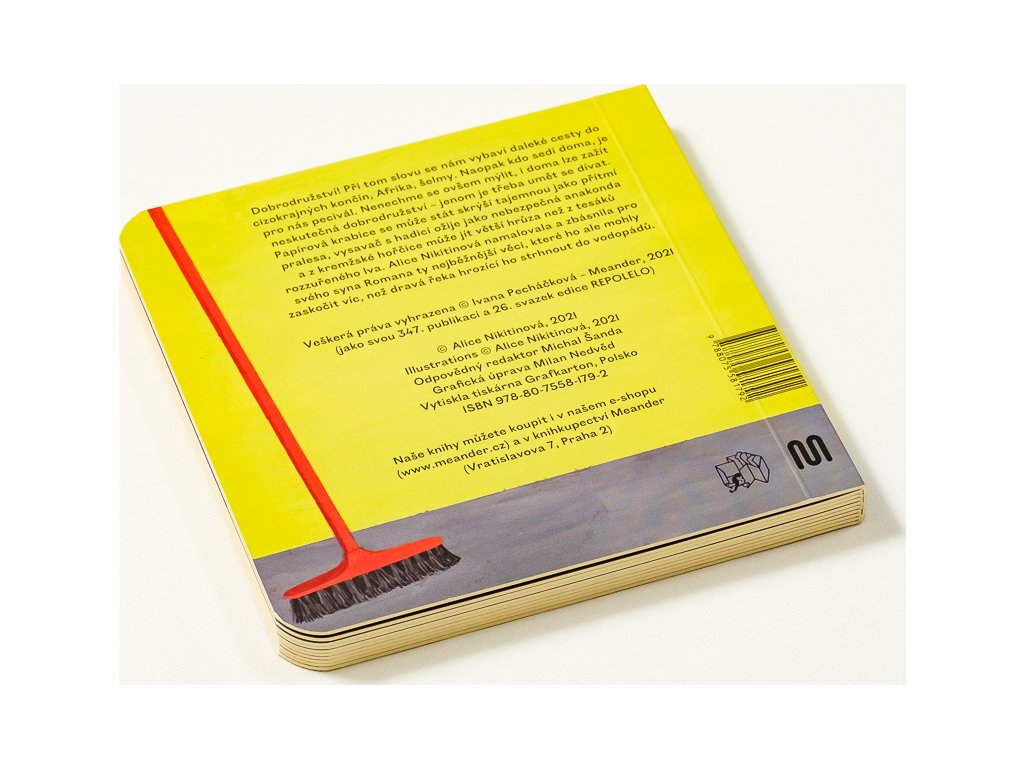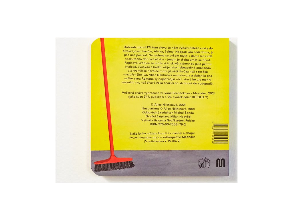 Papierová krabica sa môže stať skrýšou tajomnou ako prítmie pralesa, vysávač s hadicou ožije ako nebezpečná anakonda az kremžskej horčice môže ísť väčšia hrôza ako z tesákov rozzúreného leva. Alice Nikitinová namaľovala a zbásnila pre svojho syna Romana tie najbežnejšie veci, ktoré ho ale mohli zaskočiť viac, než dravá rieka hroziaca ho strhnúť do vodopádov.