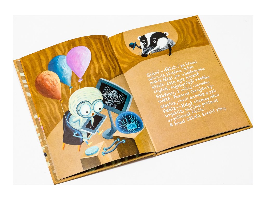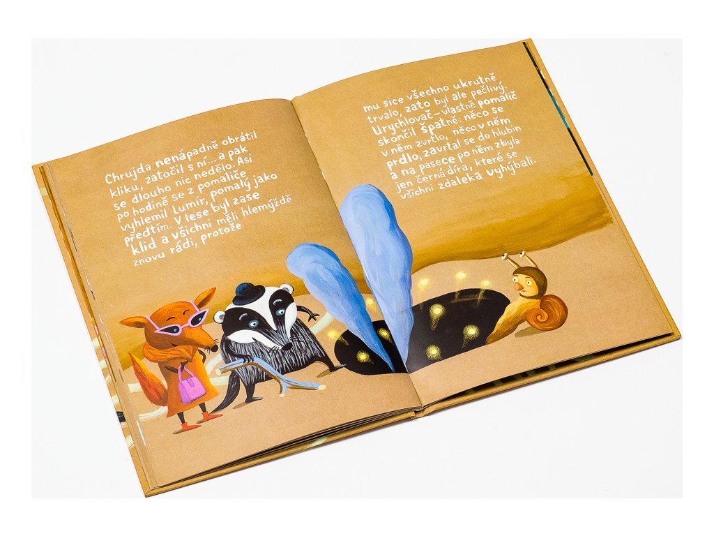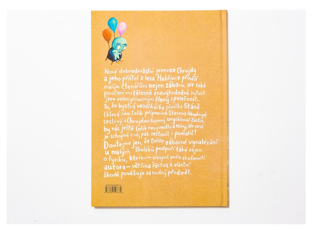 Pokračovanie dobrodružstva jazveca Chrujdy a jeho priateľov z lesa Habřinca. Chrujda sa tentoraz pustí do vynájdenia a spolu s kamarátkou, vozíčkarkou sůvičkou Stáňou, zostrojí tajomný urýchľovač. Do prístroja ale omylom vlezie slimák a jeho urýchlenie spôsobí rad veselých príhod. Chrujdovi sa nakoniec všetky zmätky podarí uviesť do pôvodného stavu av lese Habřinci znovu zavládne pokoj. Napínavý rozprávkový príbeh prináša malým čitateľom nielen zábavu, ale aj poučenie, že aj bytosti s hedikepom sú platnými a veľmi prínosnými členmi spoločnosti. A snáď v nich tiež podporí záujem o fyziku, ktorú – aspoň podľa skúseností autora – väčšina školákov na vlastnú škodu považuje za nudný predmet.