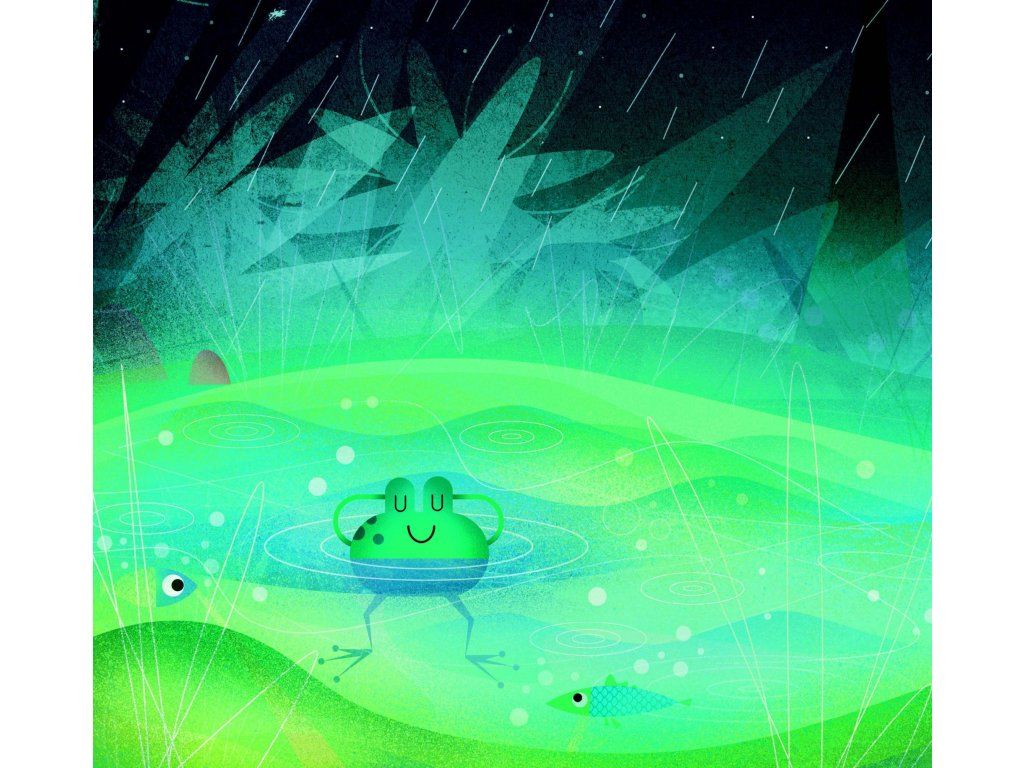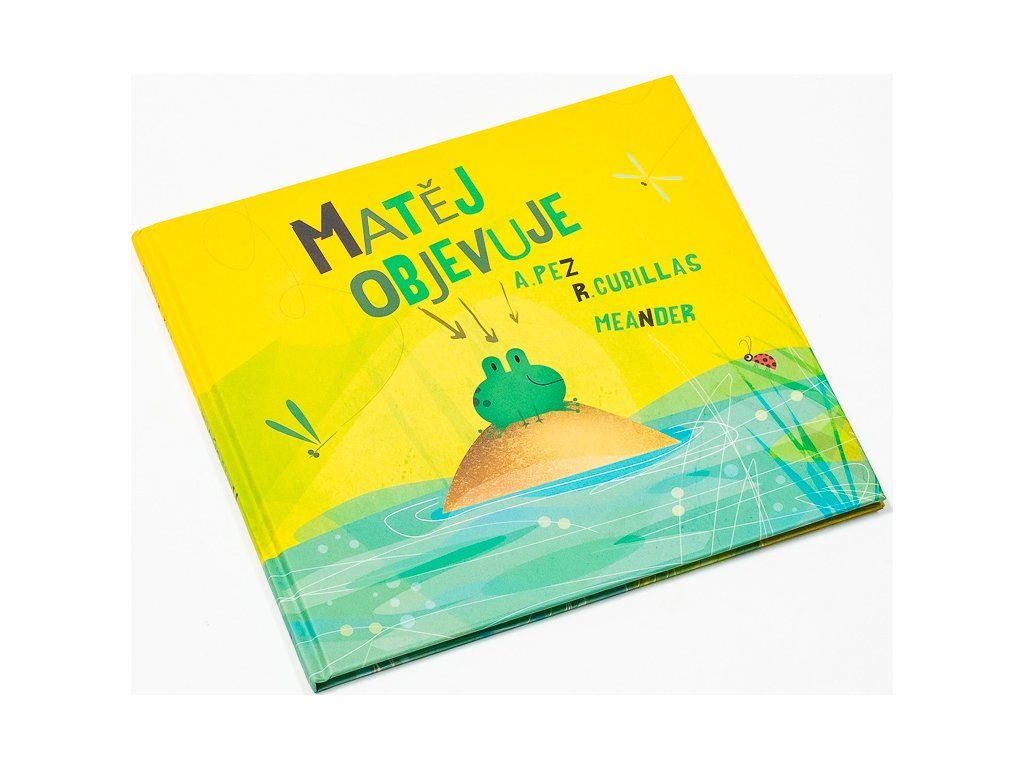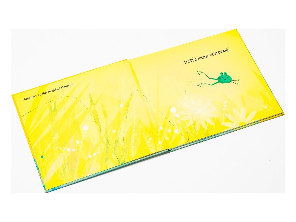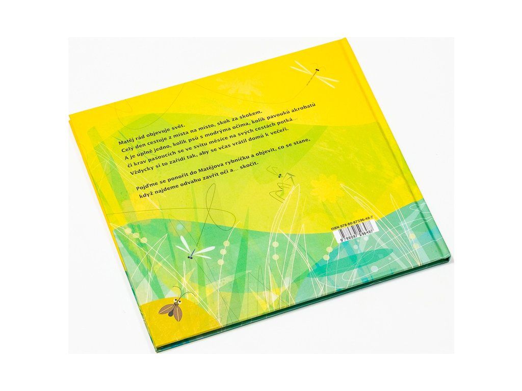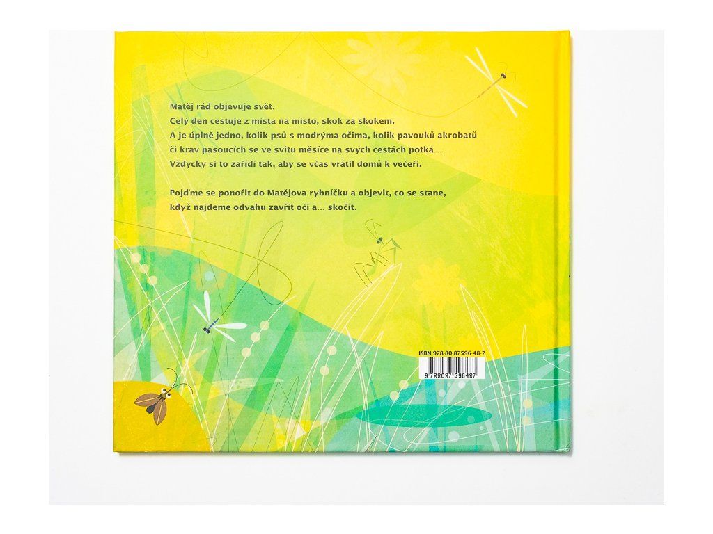 Matej rád objavuje svet. Celý deň cestuje z miesta na miesto, skok za skokom. Je úplne jedno, koľko psov s modrými očami, koľko pavúkov akrobatov či kráv pasúcich sa vo svite mesiaca na svojich cestách stretne, vždy si to zariadi tak, aby sa včas vrátil domov na večeru. Poďme sa ponoriť do Matejovho rybníčka a objaviť, čo sa stane, keď nájdeme odvahu zavrieť oči a… skočiť.