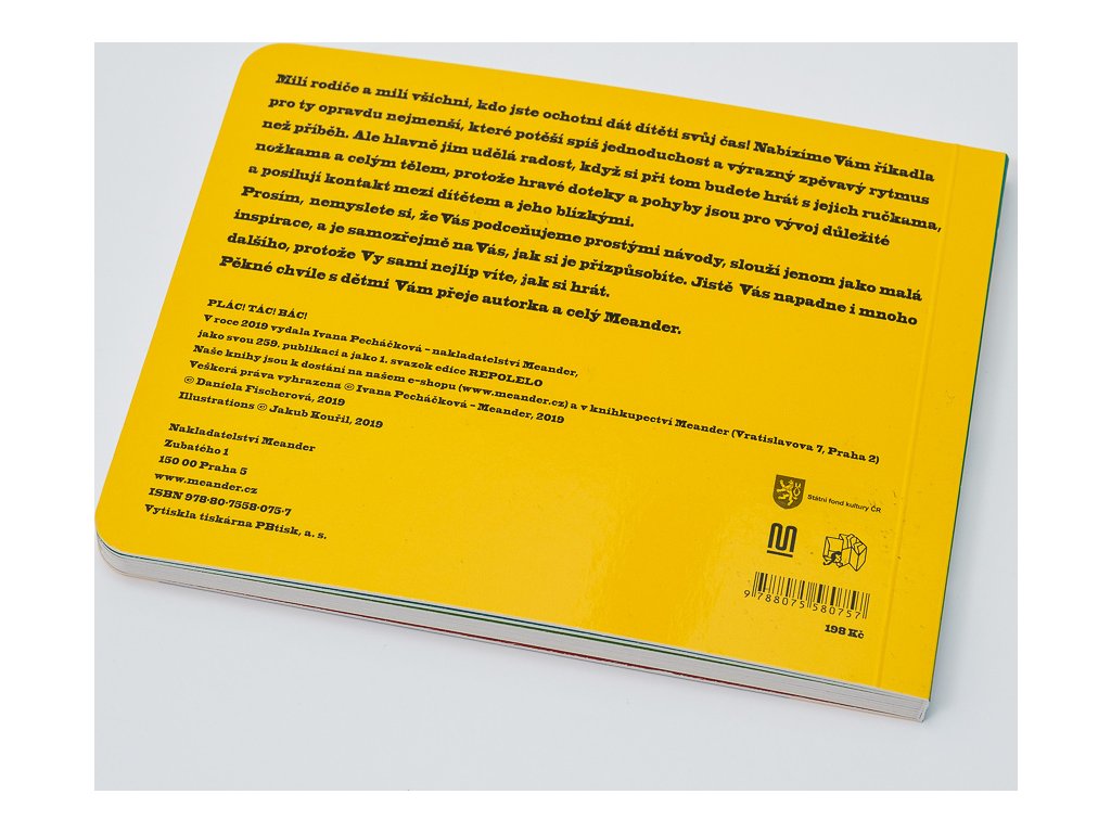 V novej edícii ponúkame riekanky pre tých najmenších, ktoré potešia skôr jednoduchosť a výrazný spevavý rytmus ako zložitý príbeh. Ale hlavne im urobí radosť, keď sa pri tom budete hrať s ich rúčkami, nôžkami a celým telom, pretože hravé dotyky a pohyby sú pre vývoj dôležité a posilňujú kontakt medzi dieťaťom a jeho blízkymi. Prosím nemyslite si, že vás podceňujeme jednoduchými návodmi, slúži len ako malá inšpirácia, a je samozrejme na vás, ako si ich prispôsobíte. Iste vás napadne aj mnoho ďalšieho, pretože vy sami najlepšie viete, ako sa hrať. Pekné chvíle s deťmi nad knihou vám praje Daniela Fischerová a tvorivý tím Meandru.