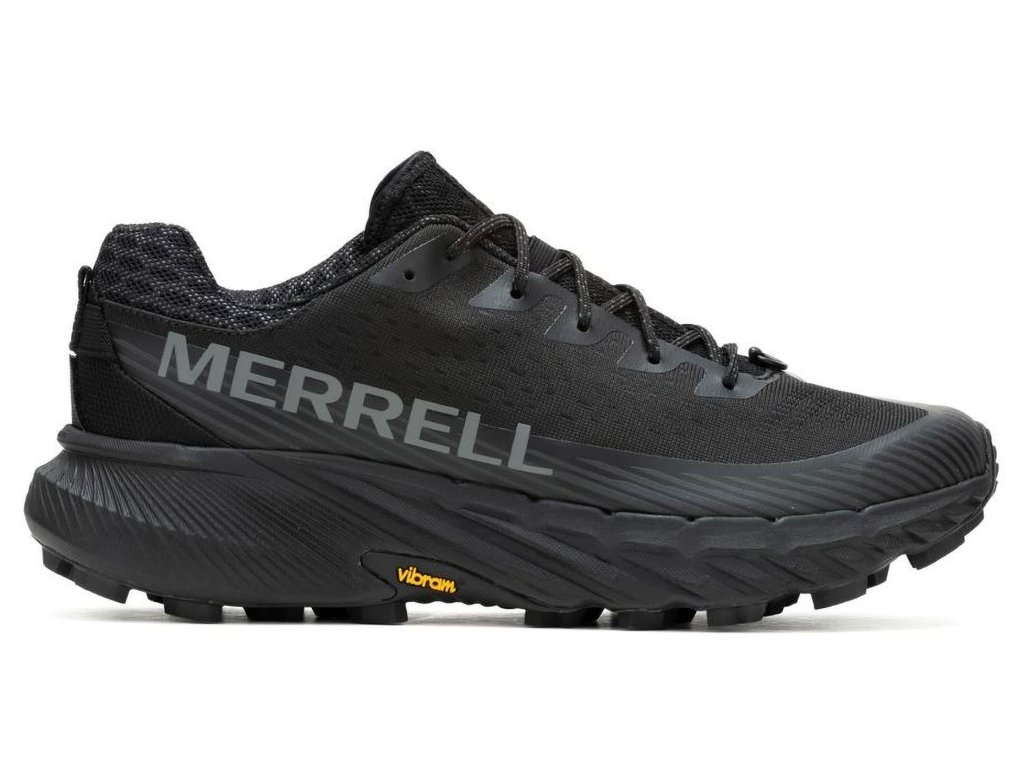 Pánske športové topánky Merrell Agility Peak 5 Black / Black v čiernej farbe zaujmú nejedného športovca. Topánky sú perfektne univerzálne a vďaka podrážke Vibram® MegaGrip zvládnu akýkoľvek terén - od behu až po ľahšie túry na horách .